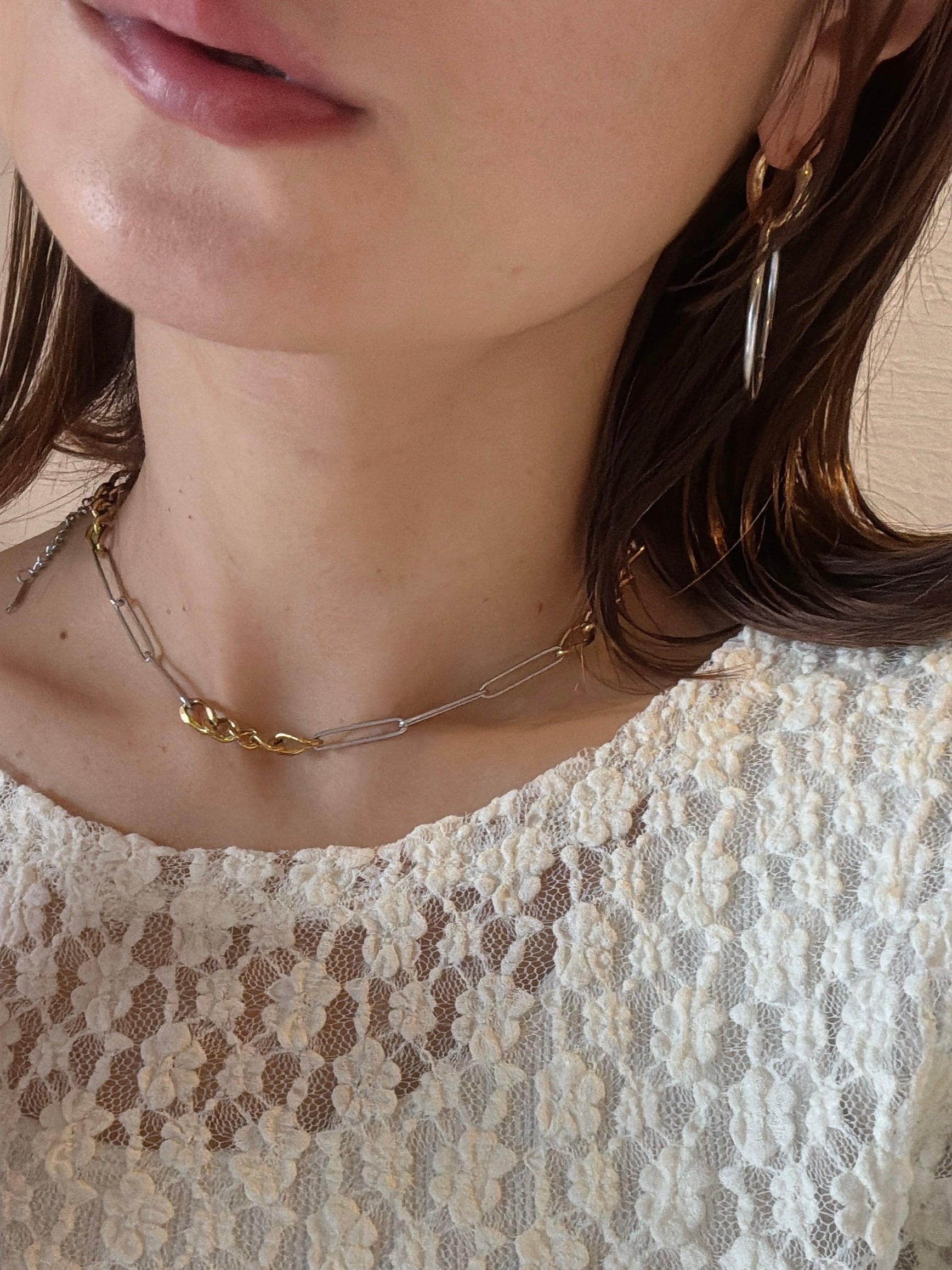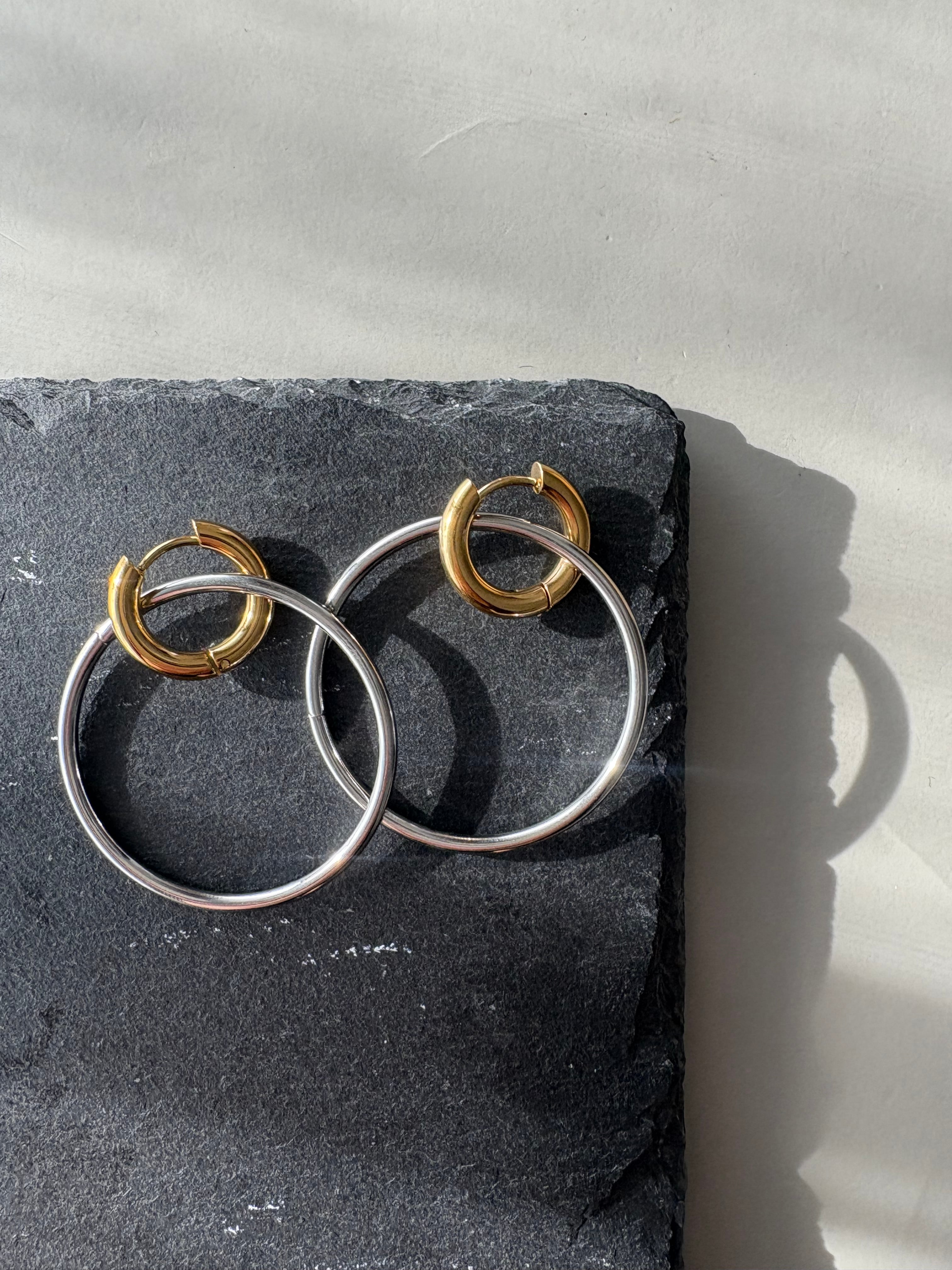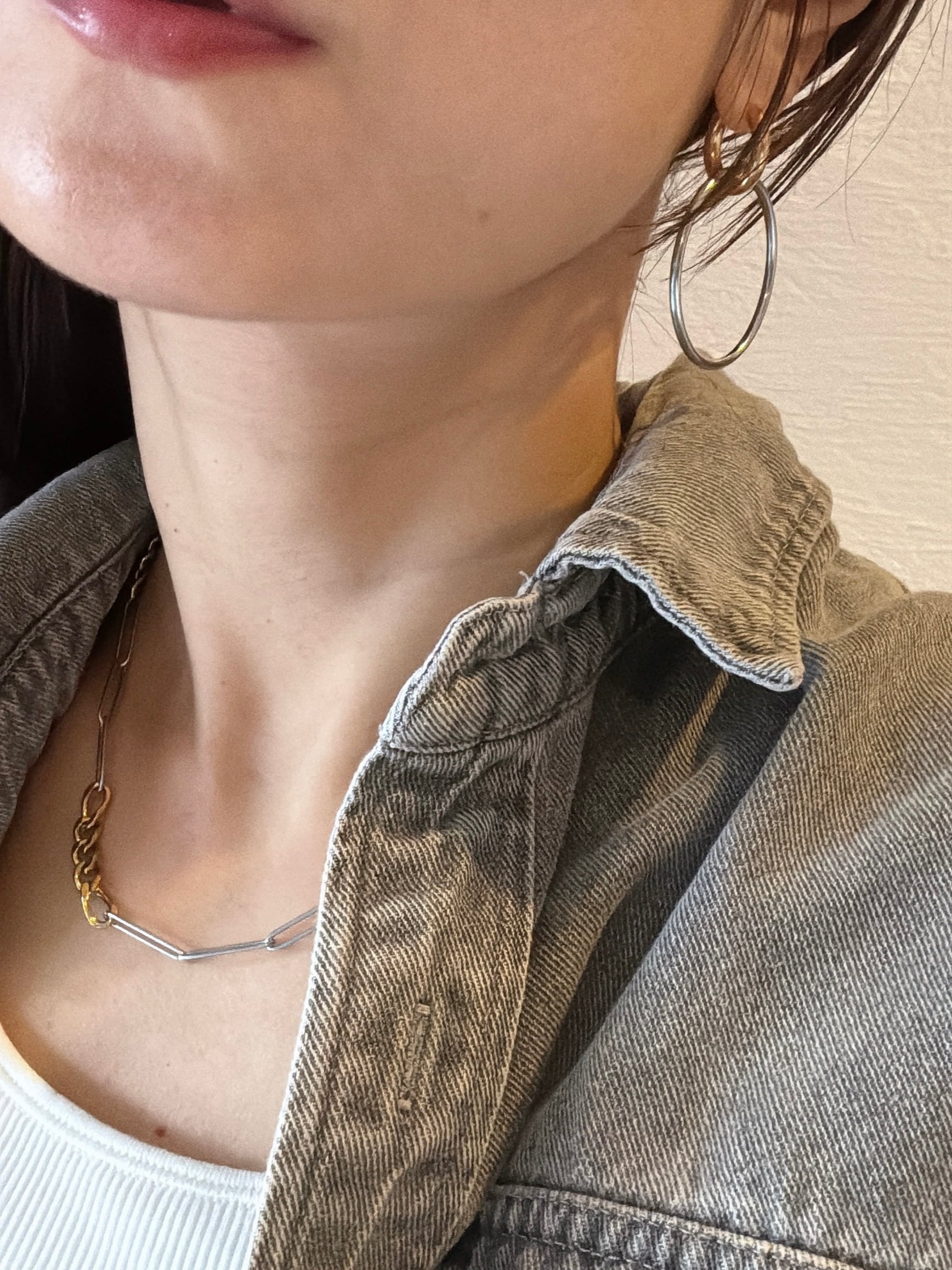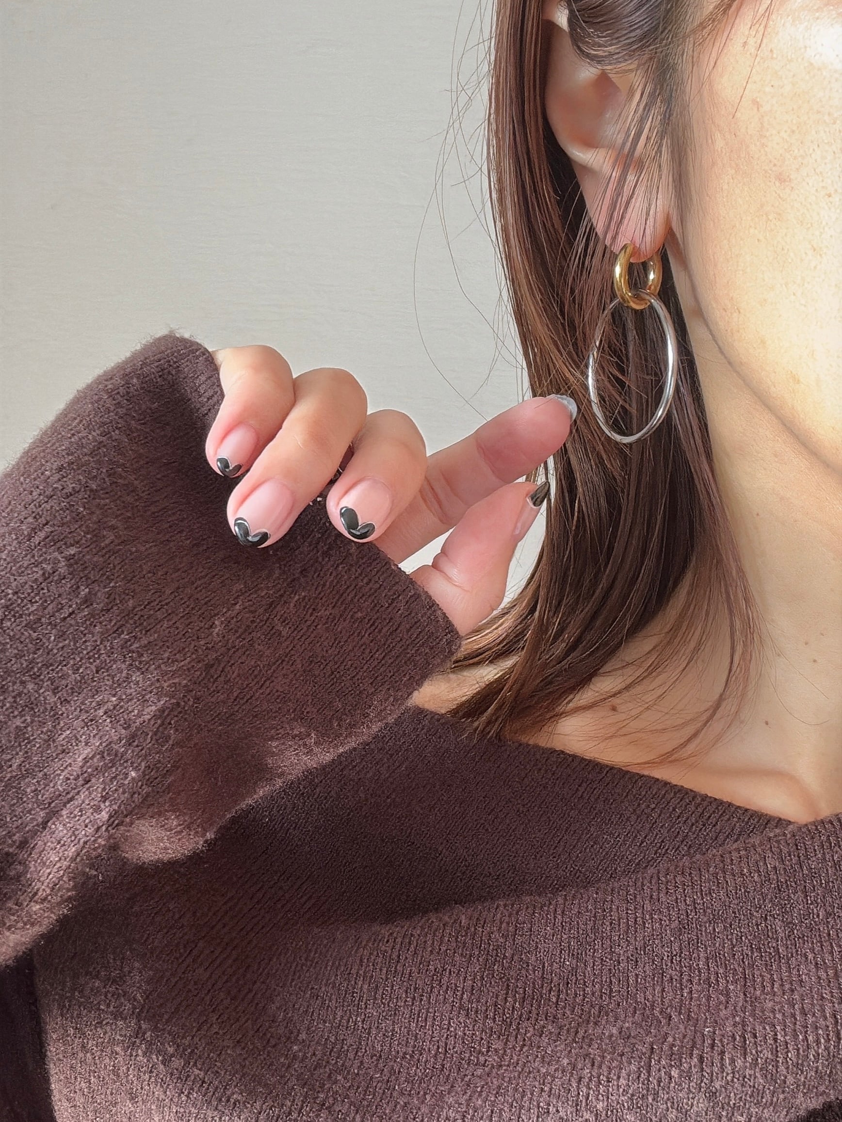 ・シルバーフープを付けて、華やかで印象的に