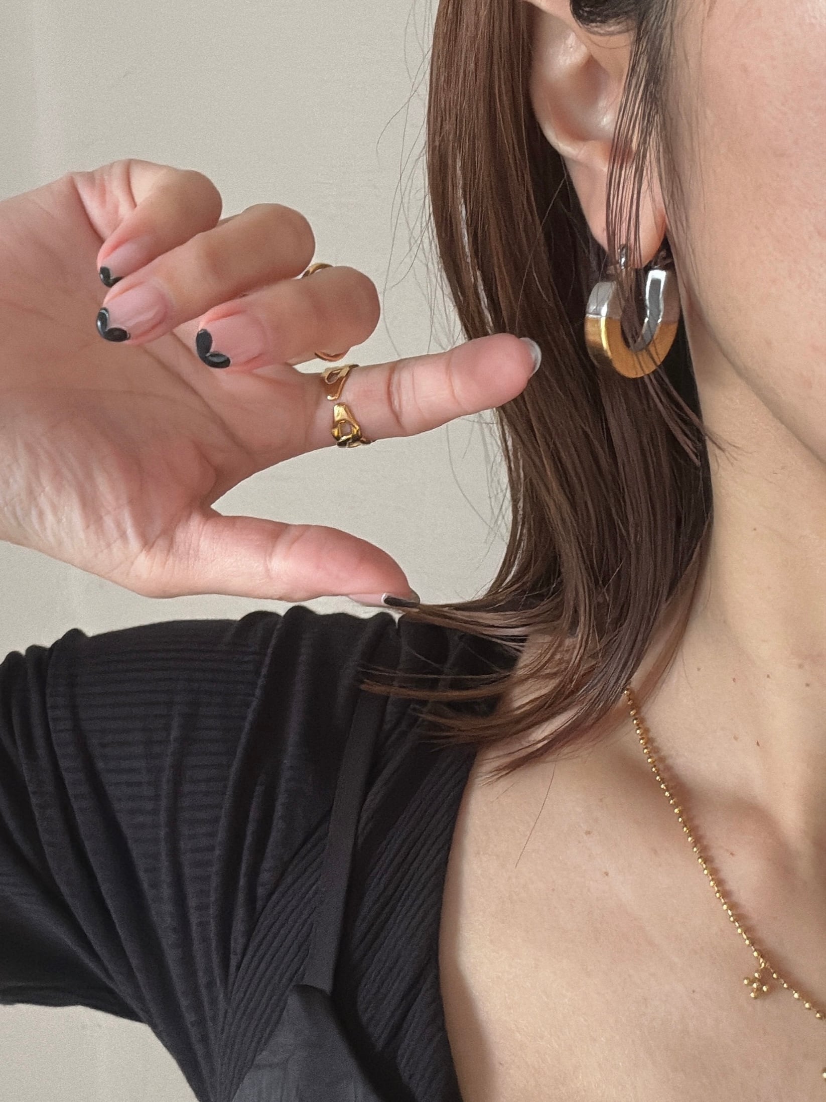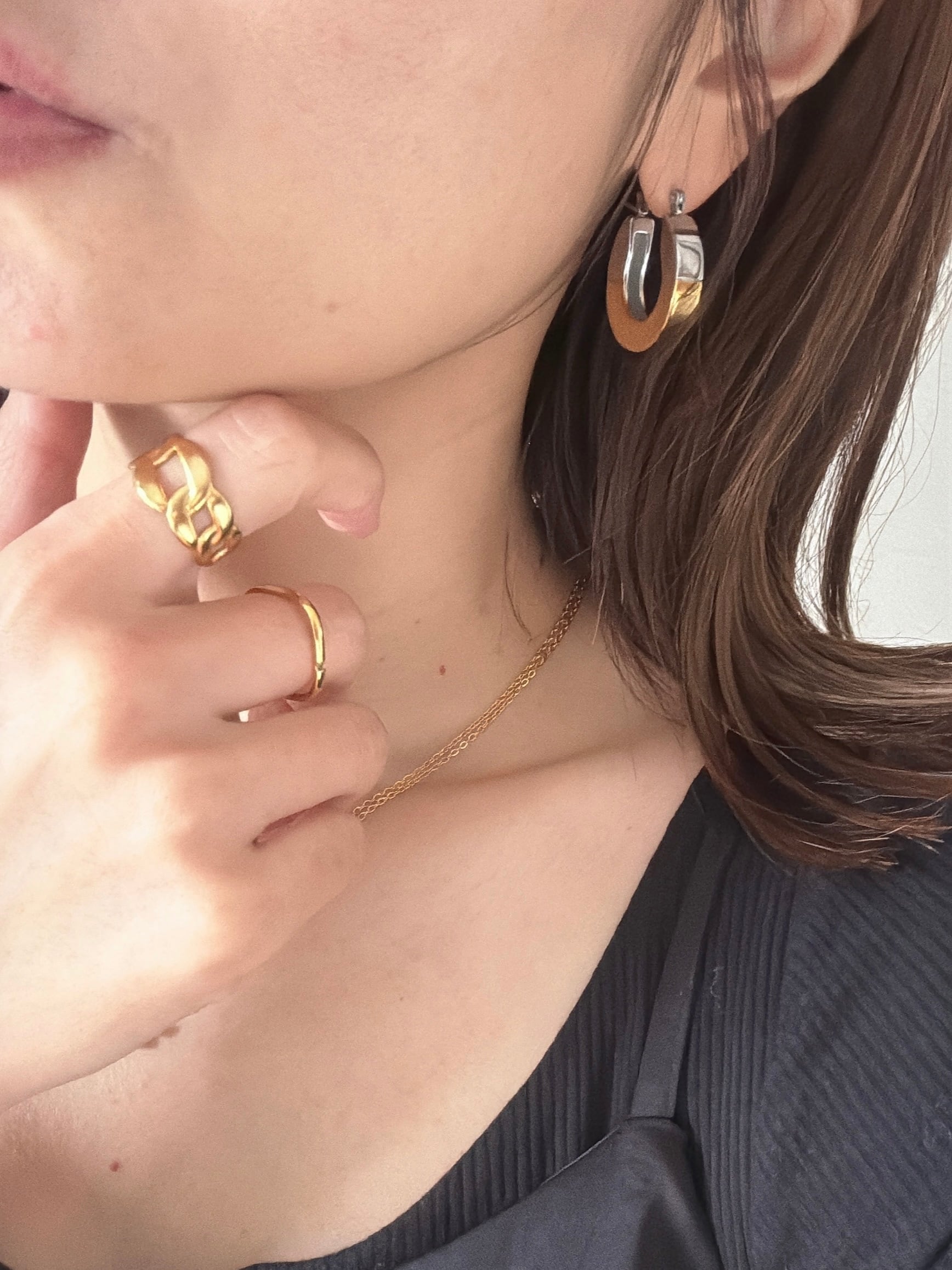 手持ちのリングやネックレスとも合わせやすい。