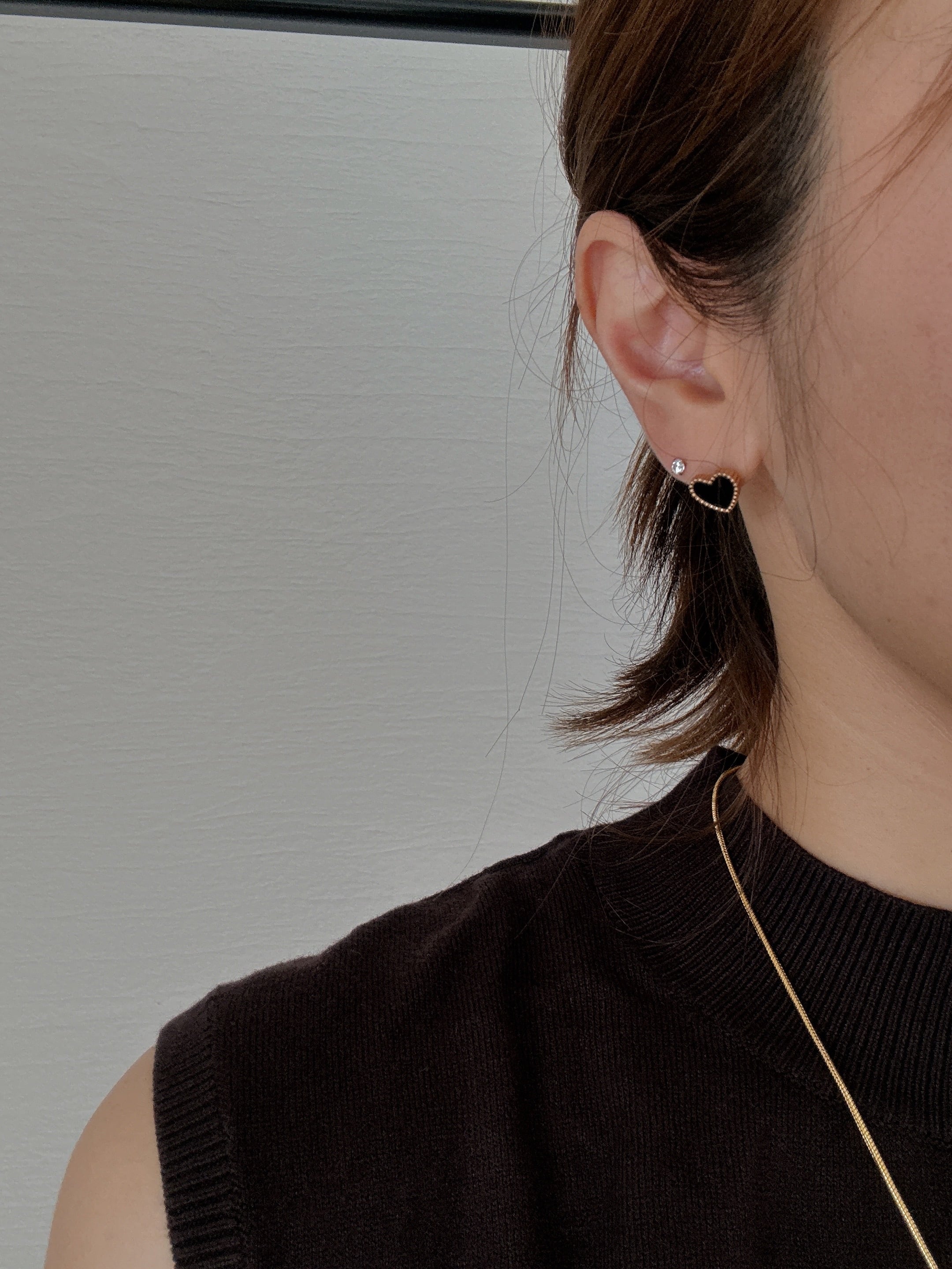 小ぶりなサイズ感ながら、耳元にしっかりと存在感を与えてくれるハートピアス。
