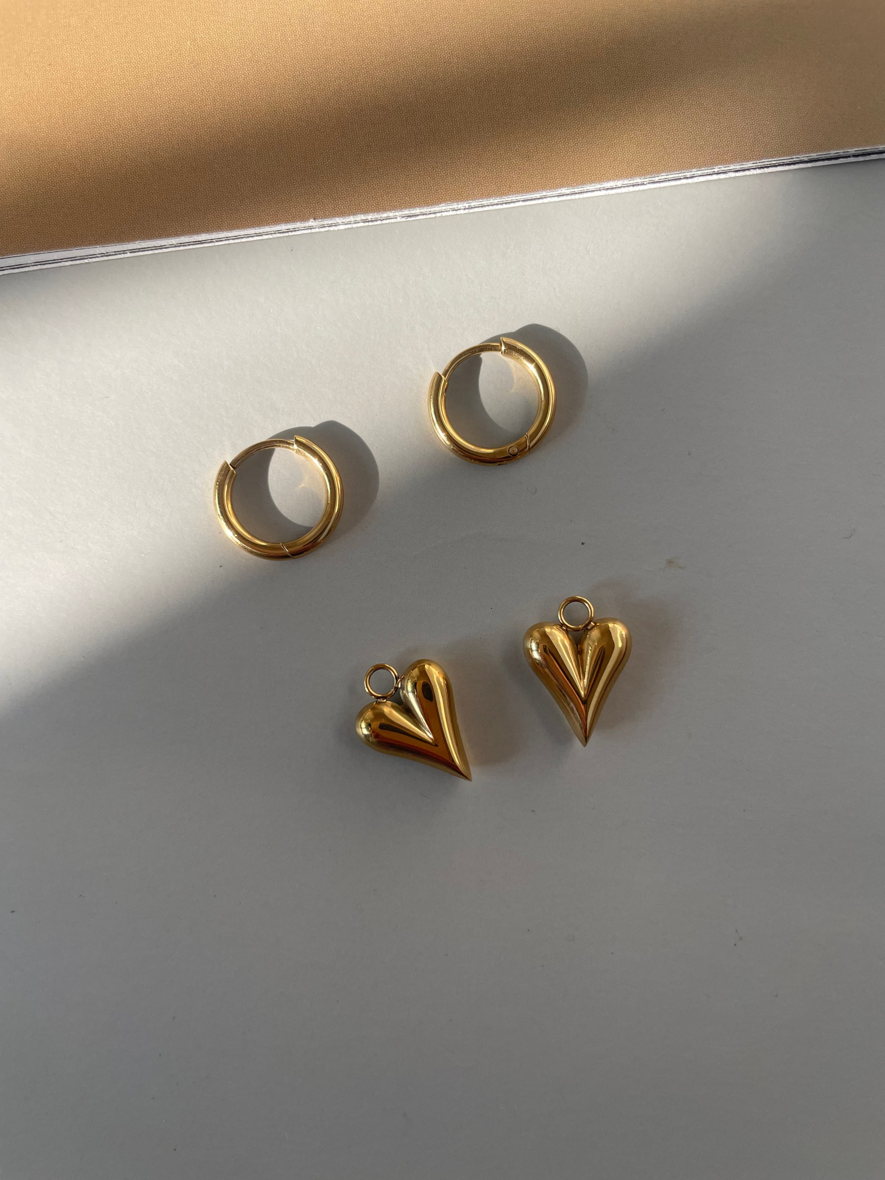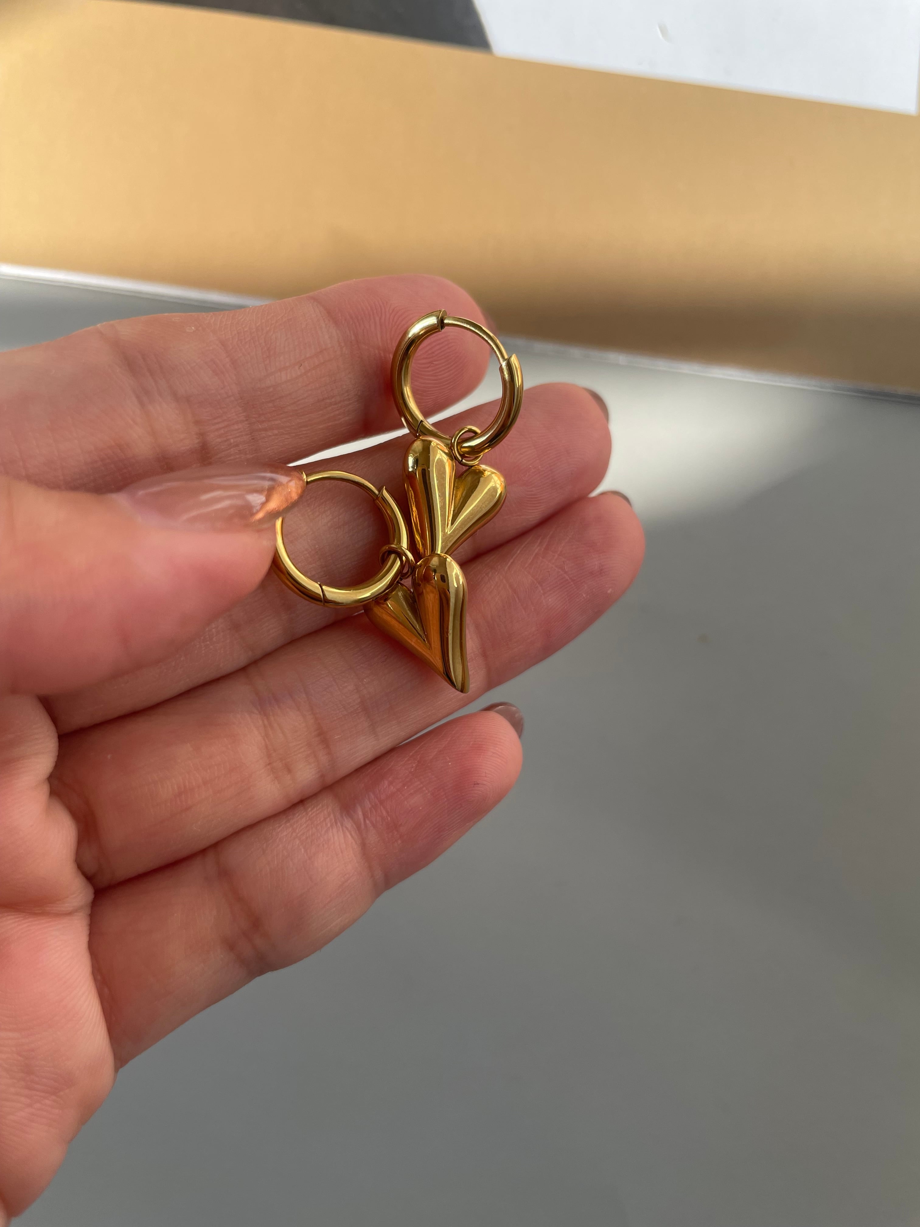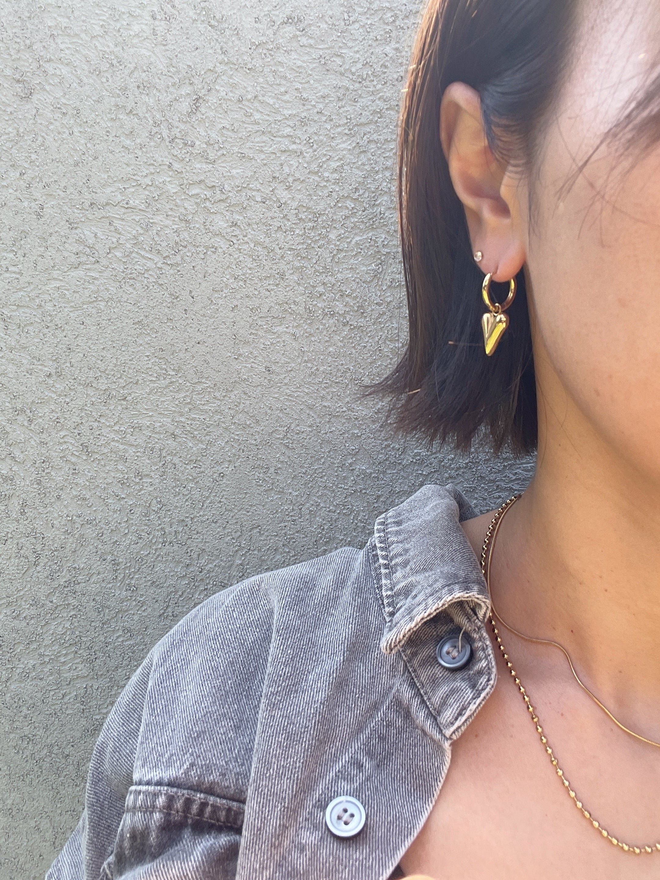 2way仕様で、ハートを外すとシンプルなフープピアスとしてもお使いいただけます。気分やコーディネートに合わせて楽しんでいただける嬉しいデザインです。ハートの部分は光沢が美しく、耳元で輝きを放ちます。