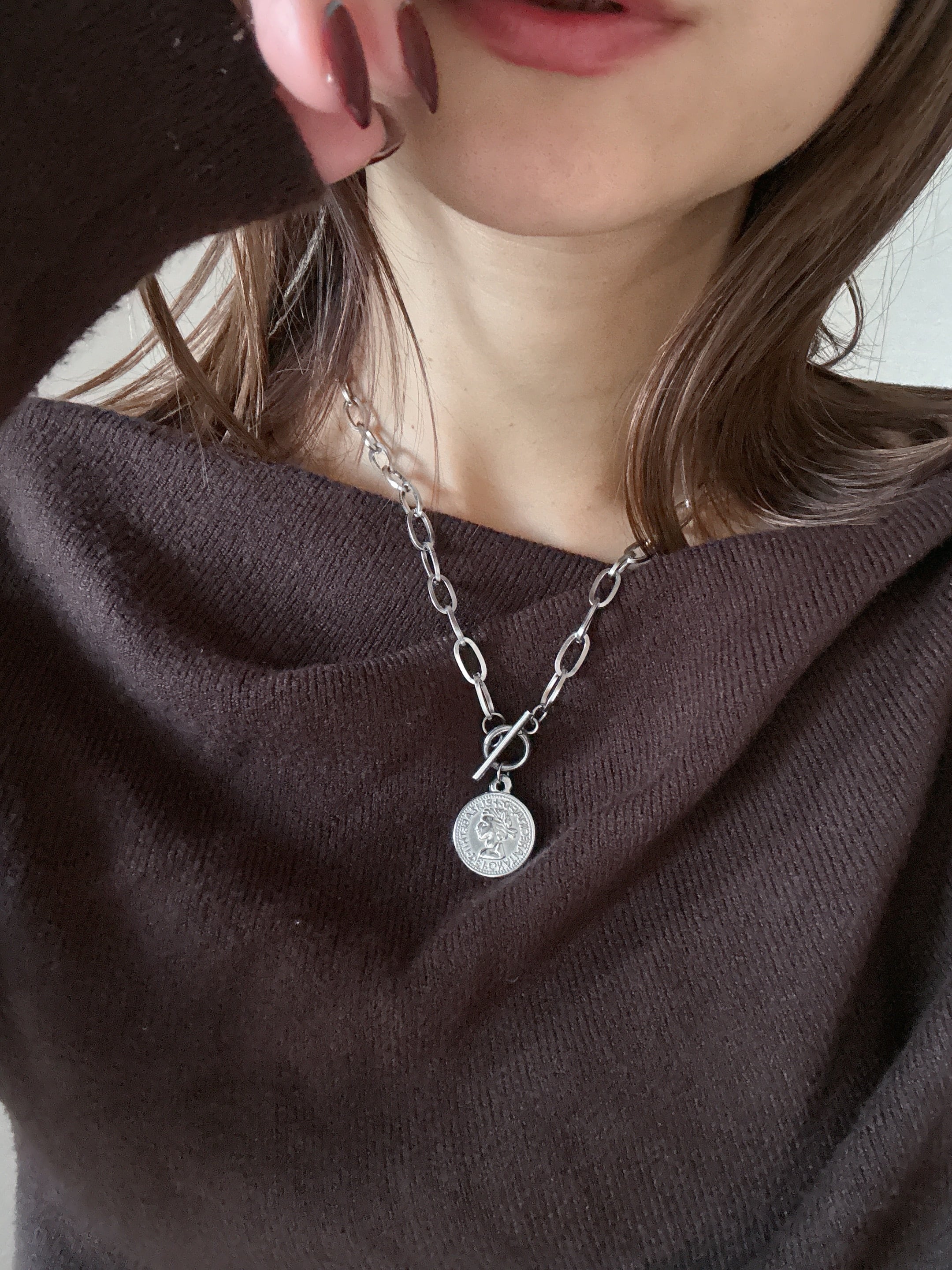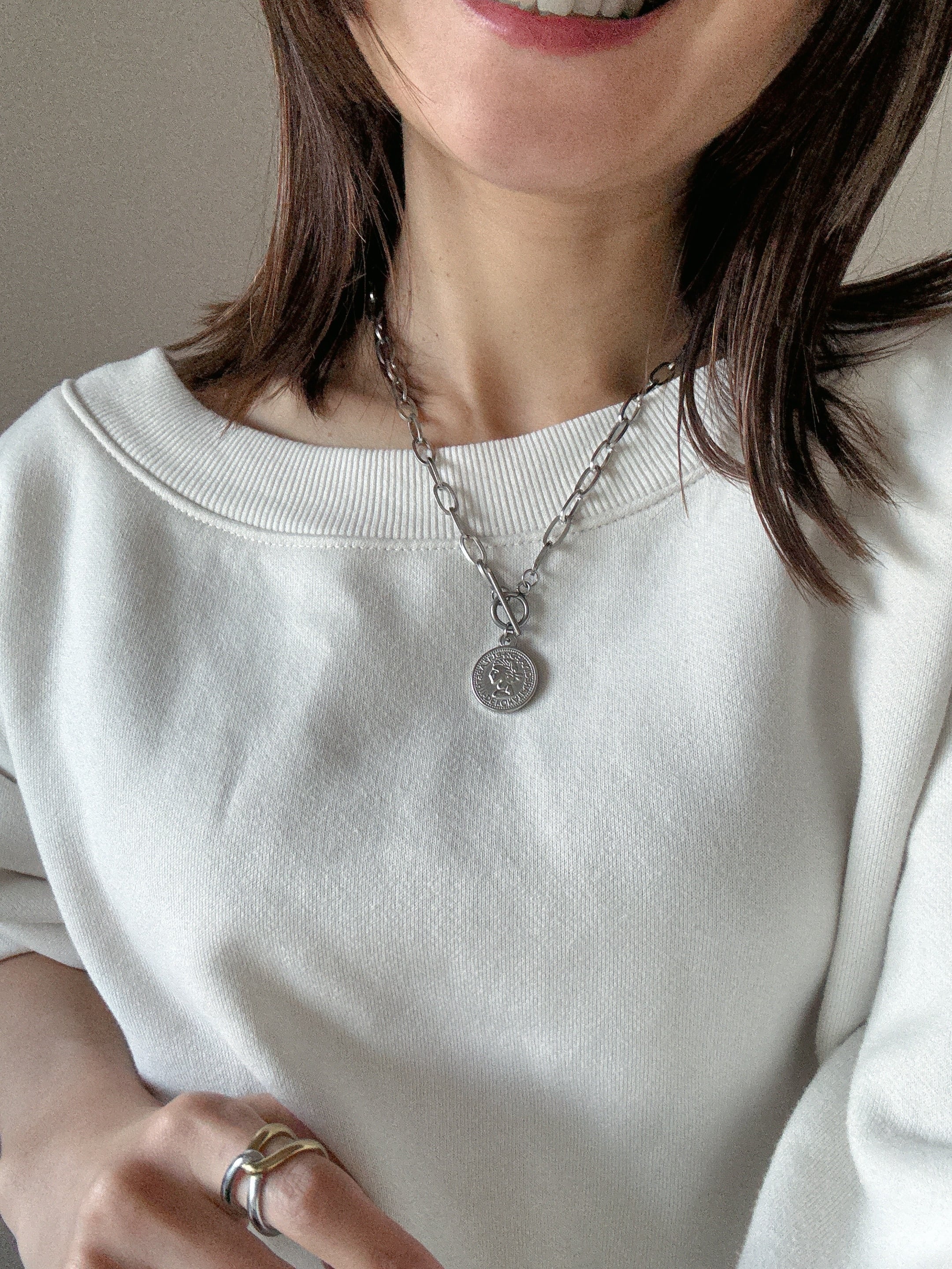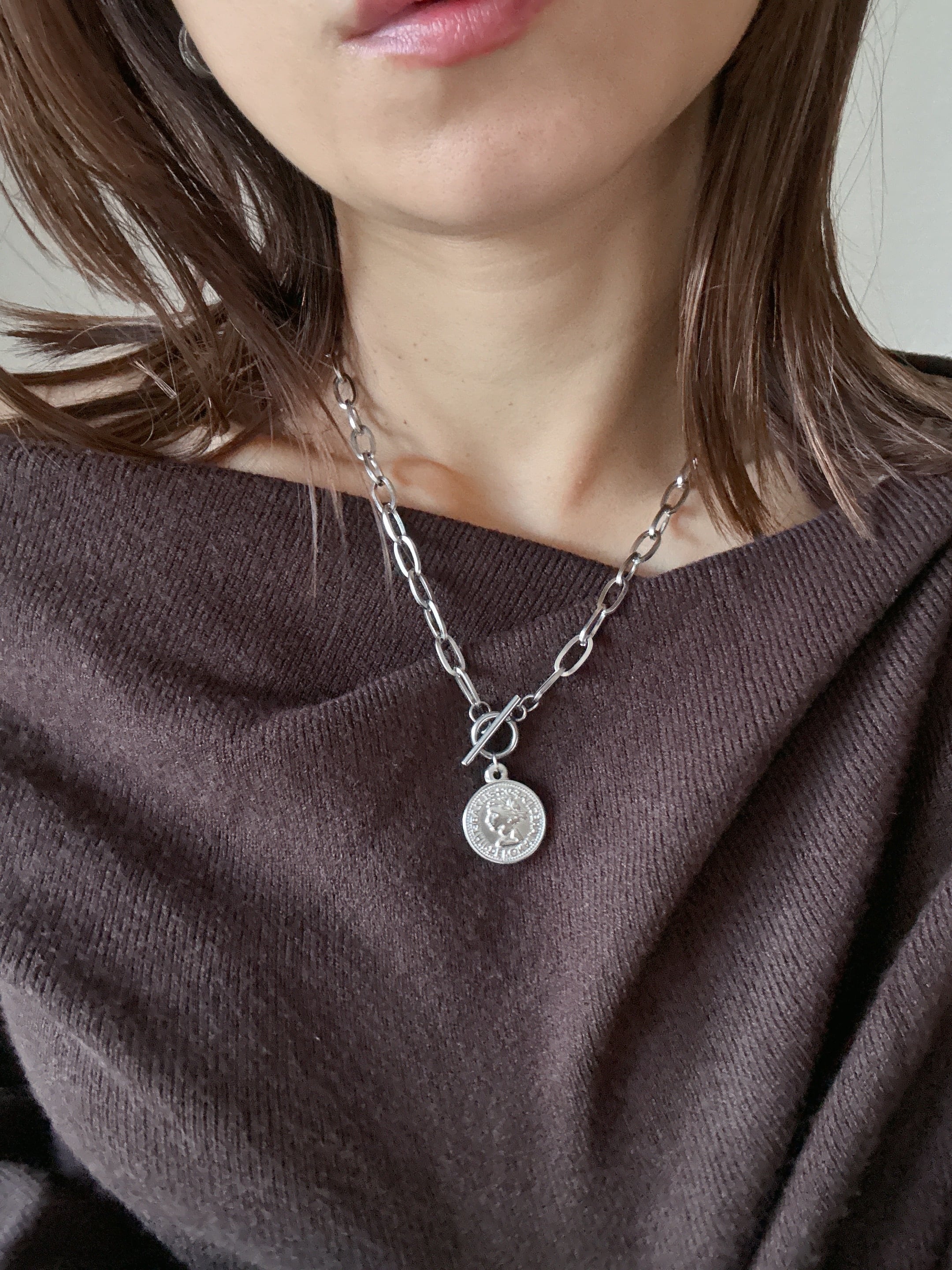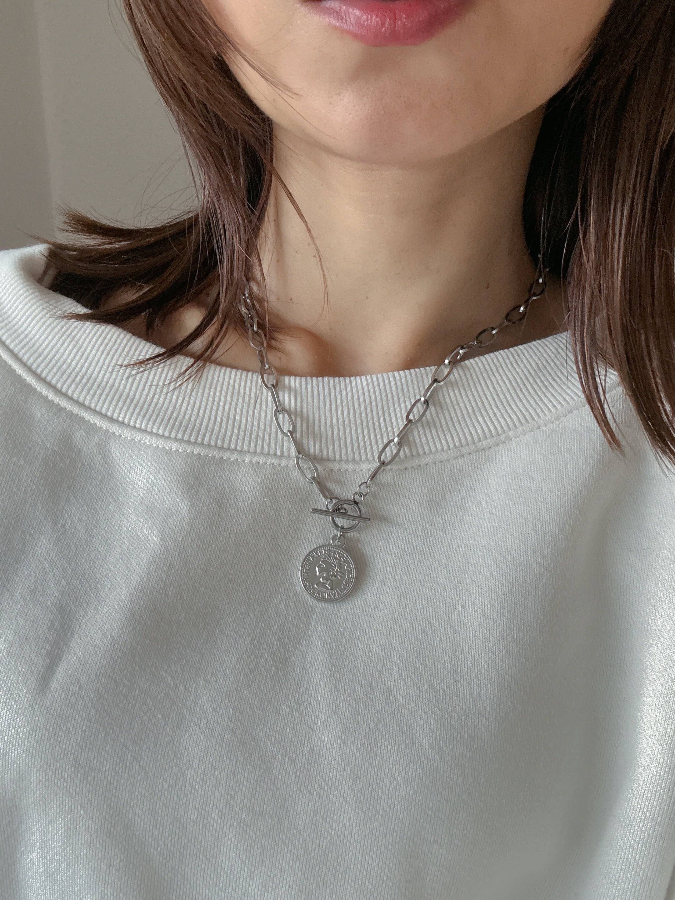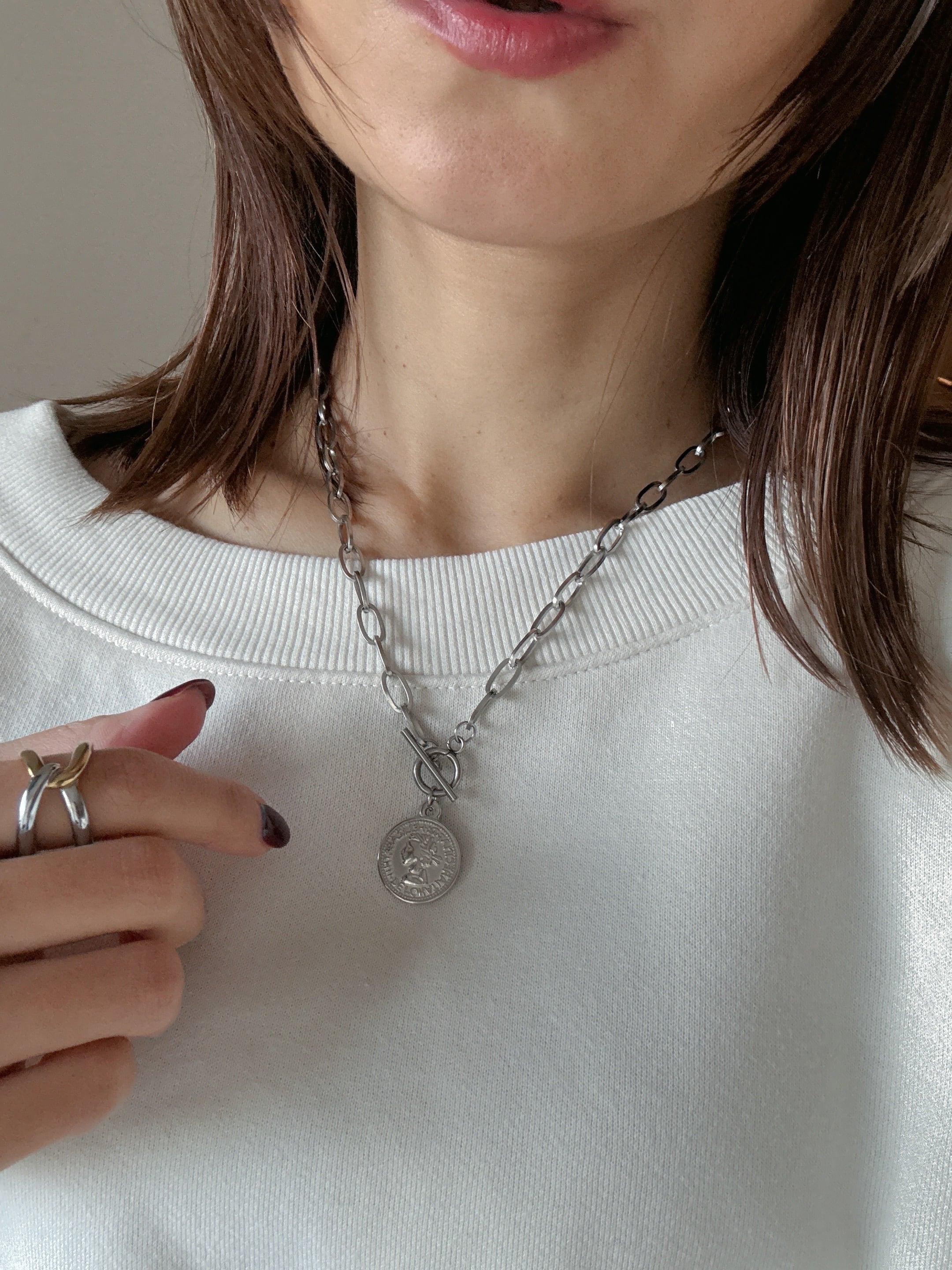 華奢なデザインとは一線を画す、しっかりと太めのチェーンが特徴のcoin silver necklace。