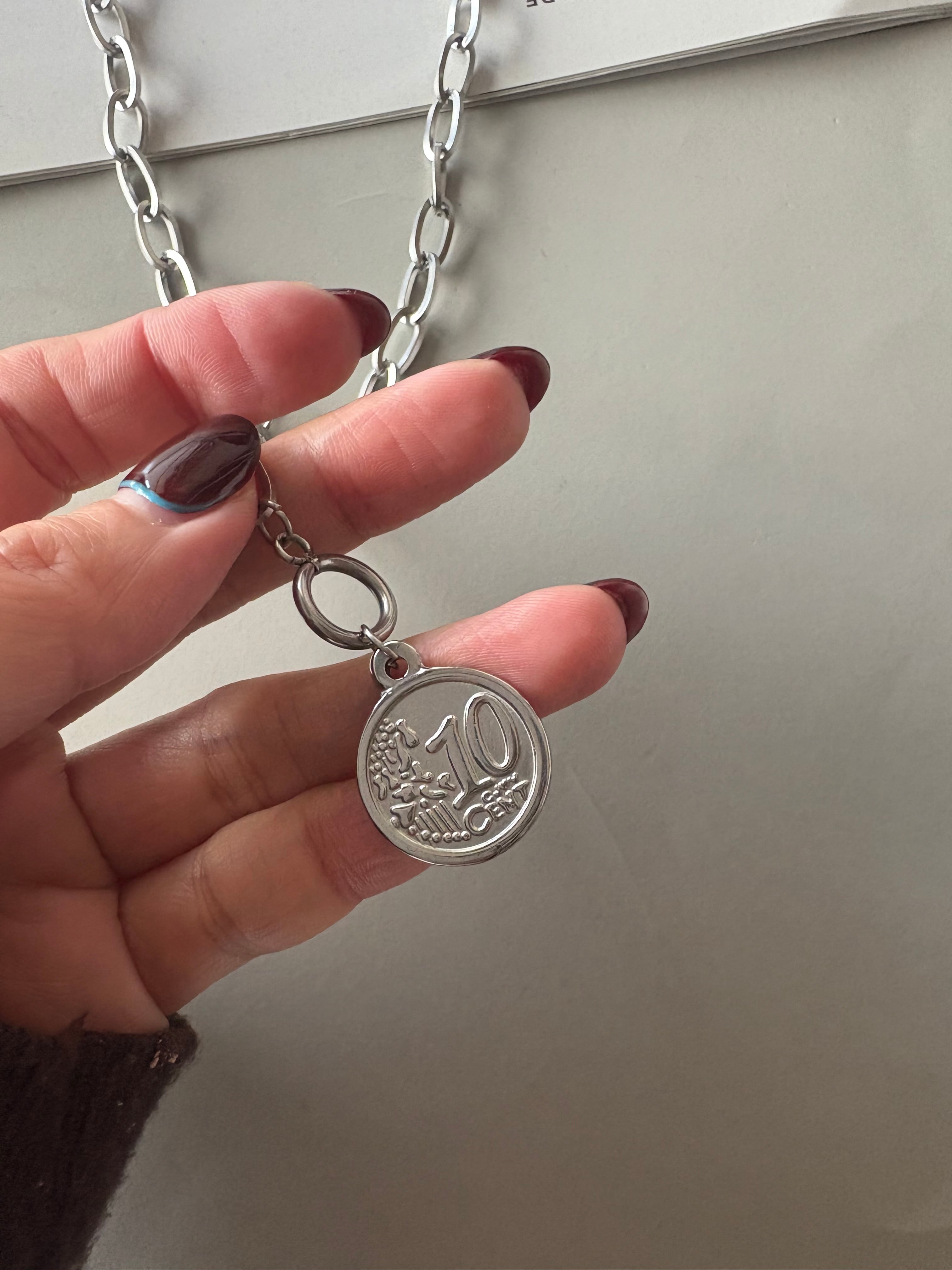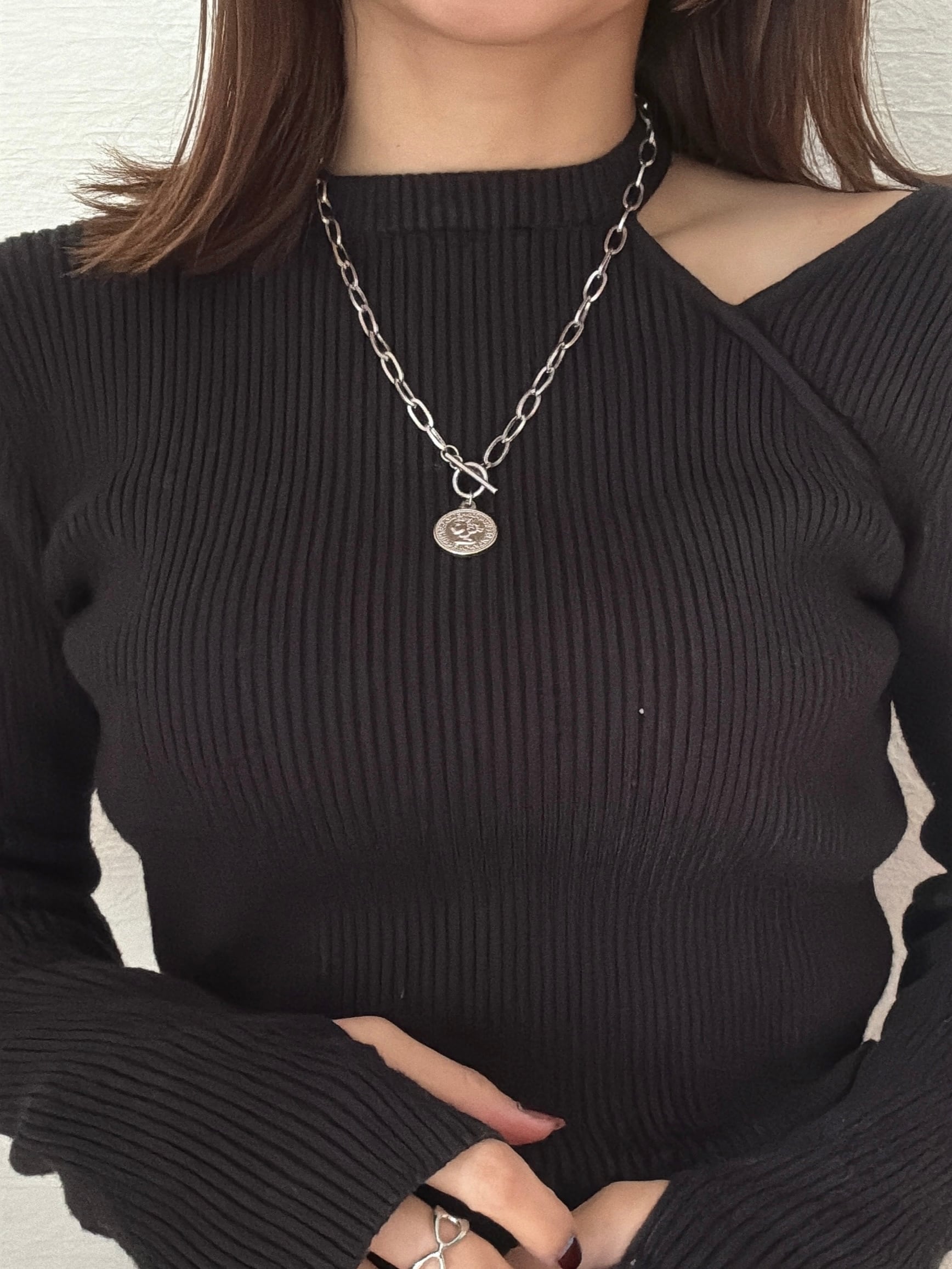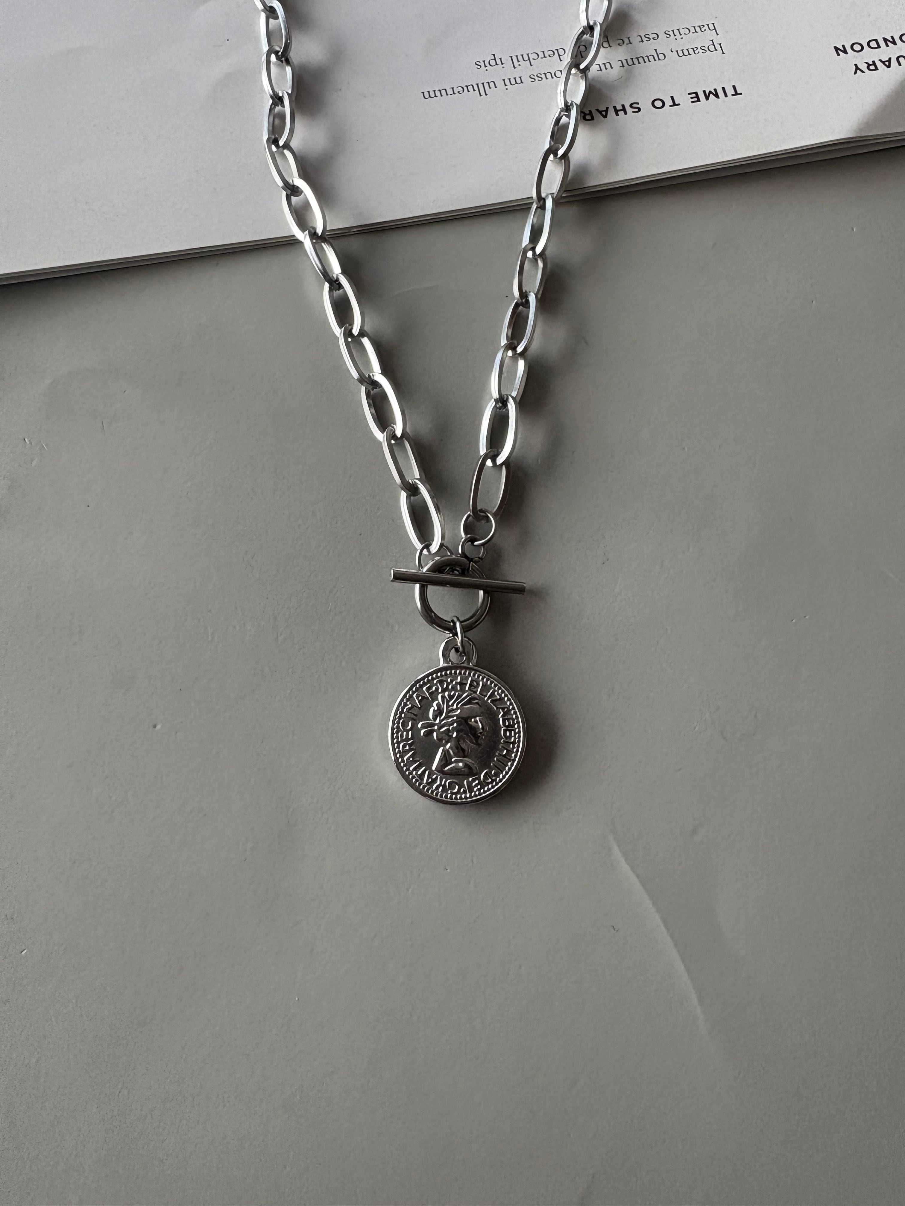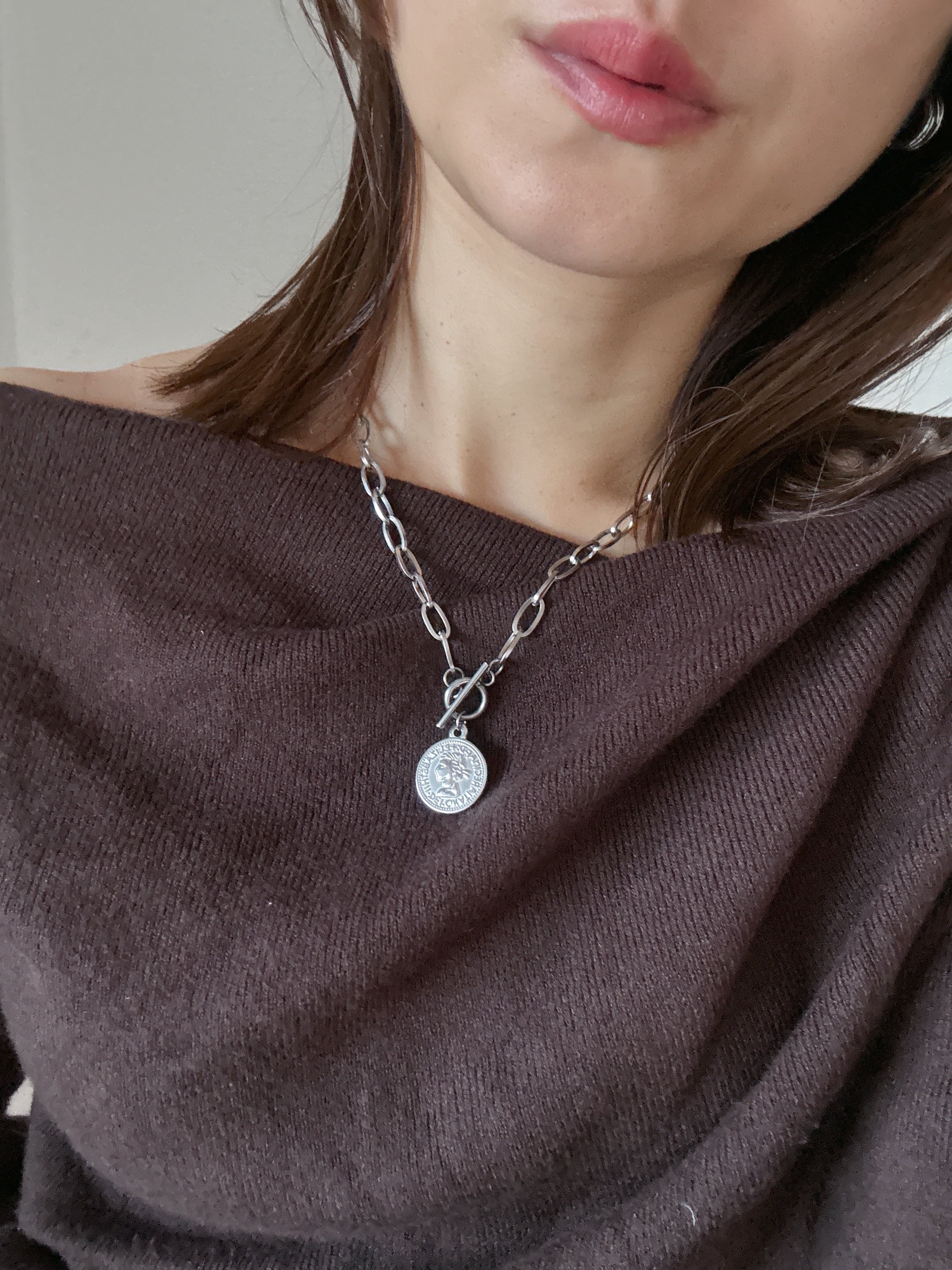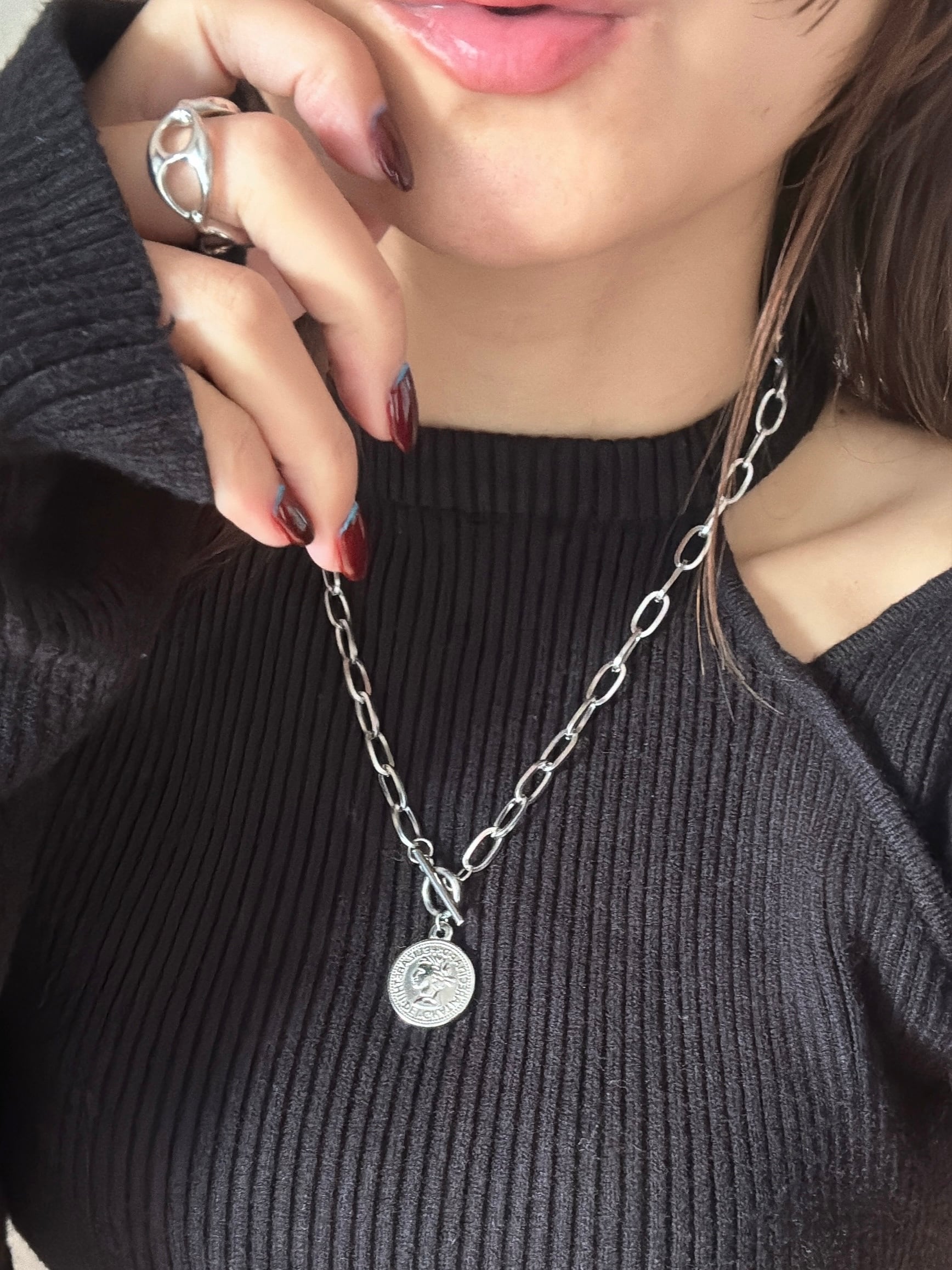 華奢なデザインとは一線を画す、しっかりと太めのチェーンが特徴のcoin silver necklace。