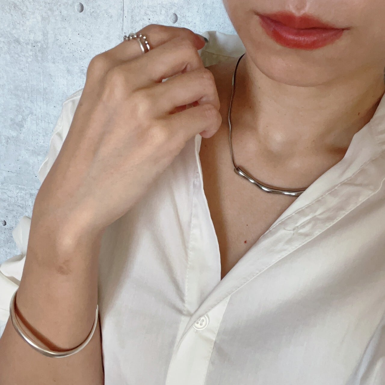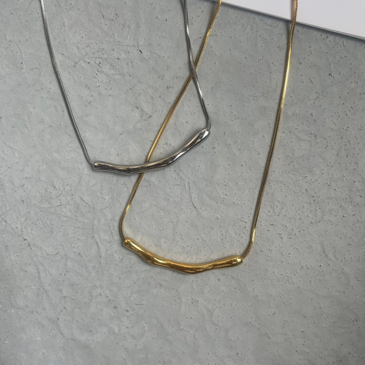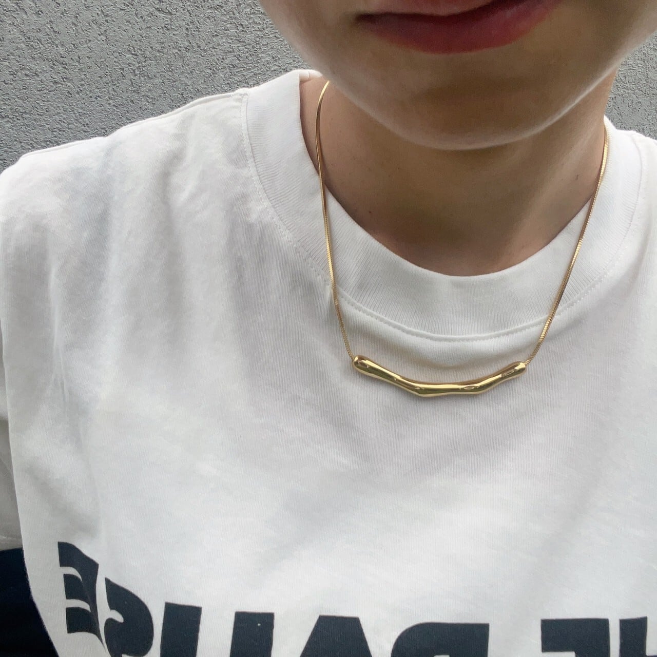 しっかりと存在感のあるメタルバーでお洋服を引き立てくれるネックレス。