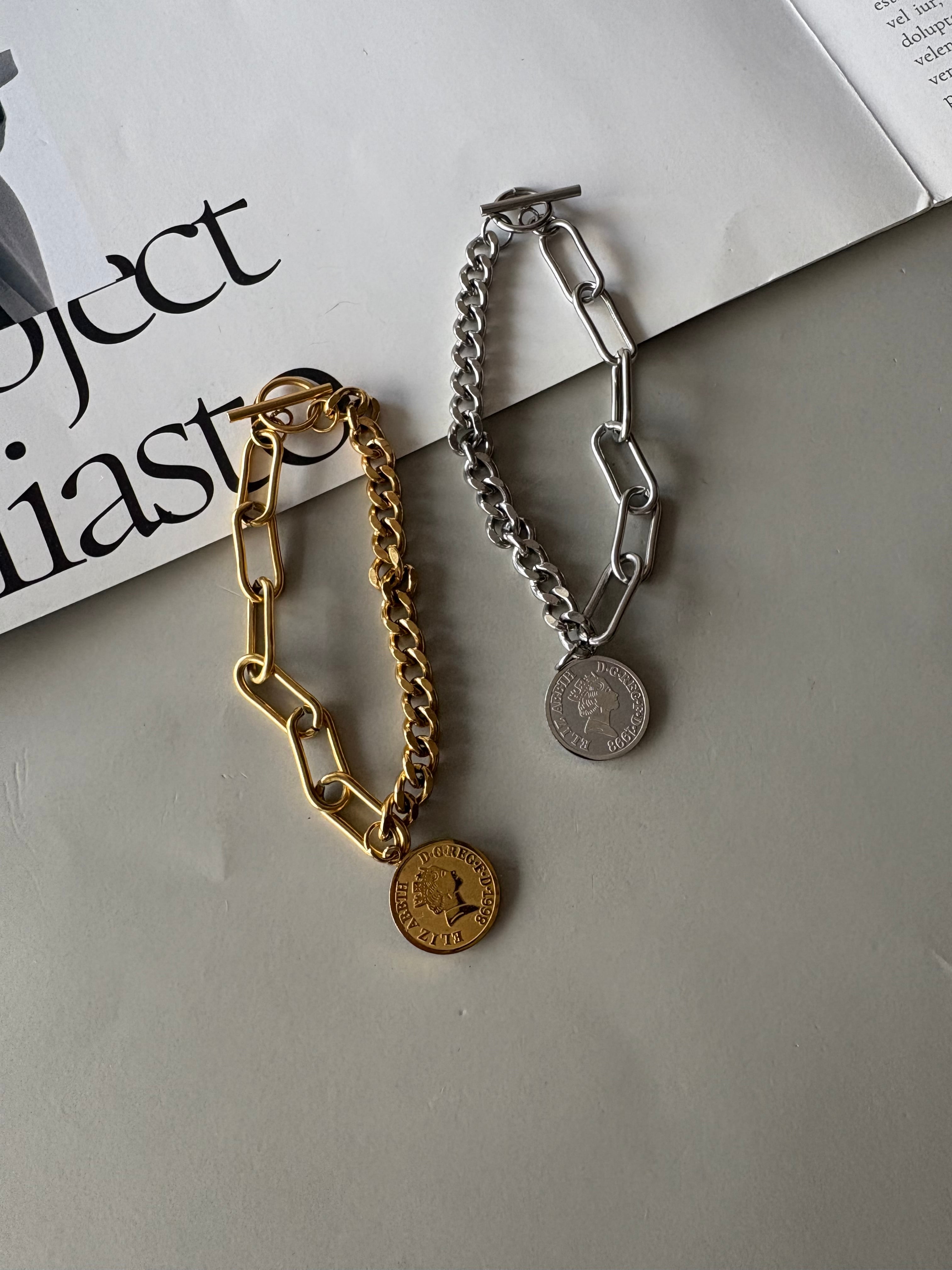 コインチャームがアクセントとなり、手首を華やかに飾ります♪