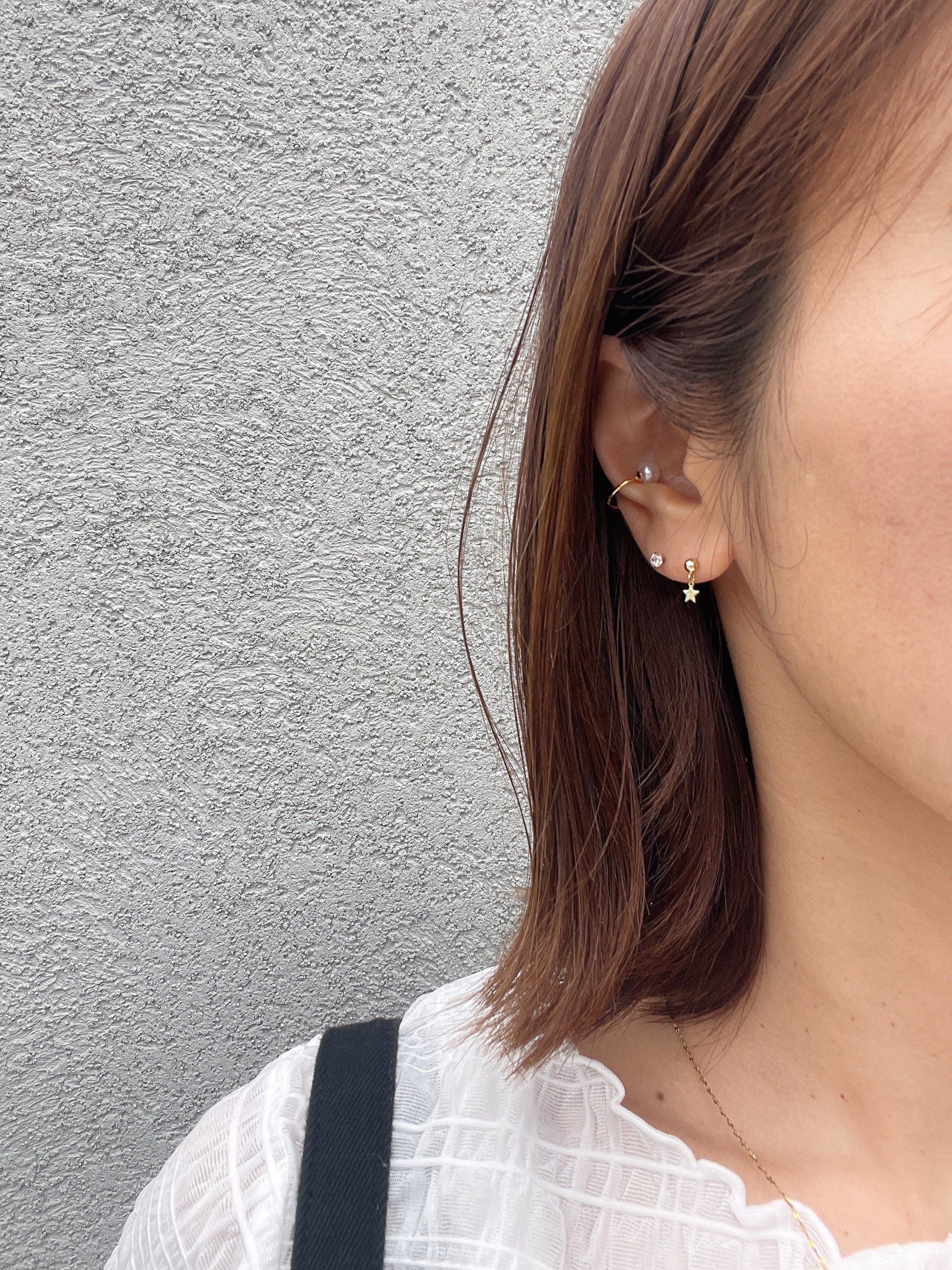 イヤリングやピアスとの重ね付けにもぴったりで、耳元に奥行きとニュアンスをプラスしてくれます。