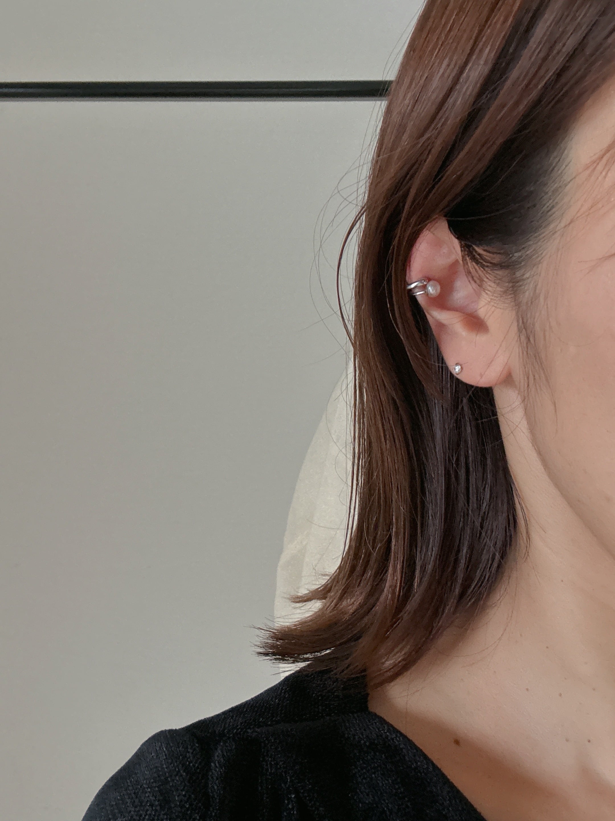 小さなパールがさりげなく輝く、片耳用のイヤカフ。