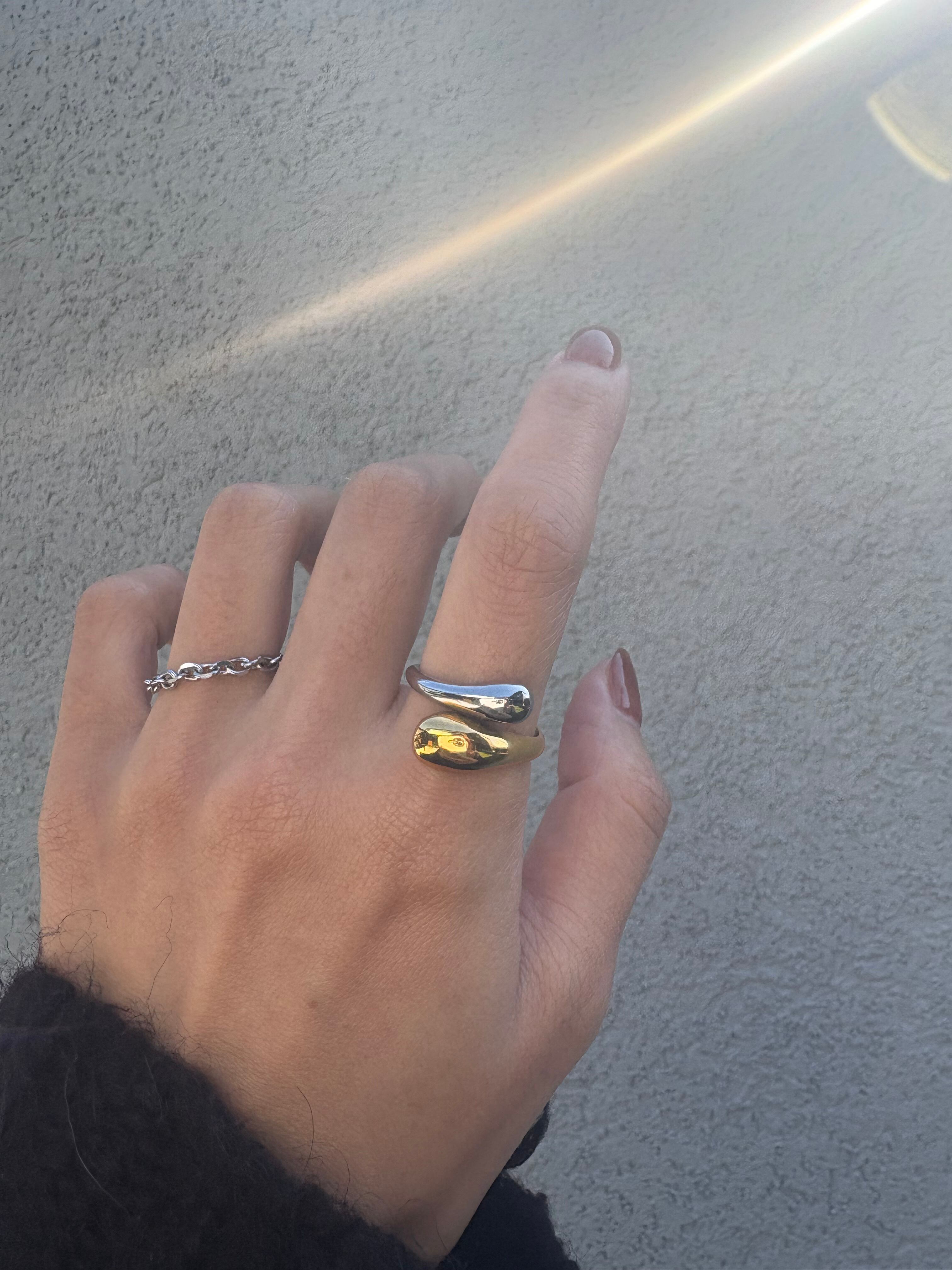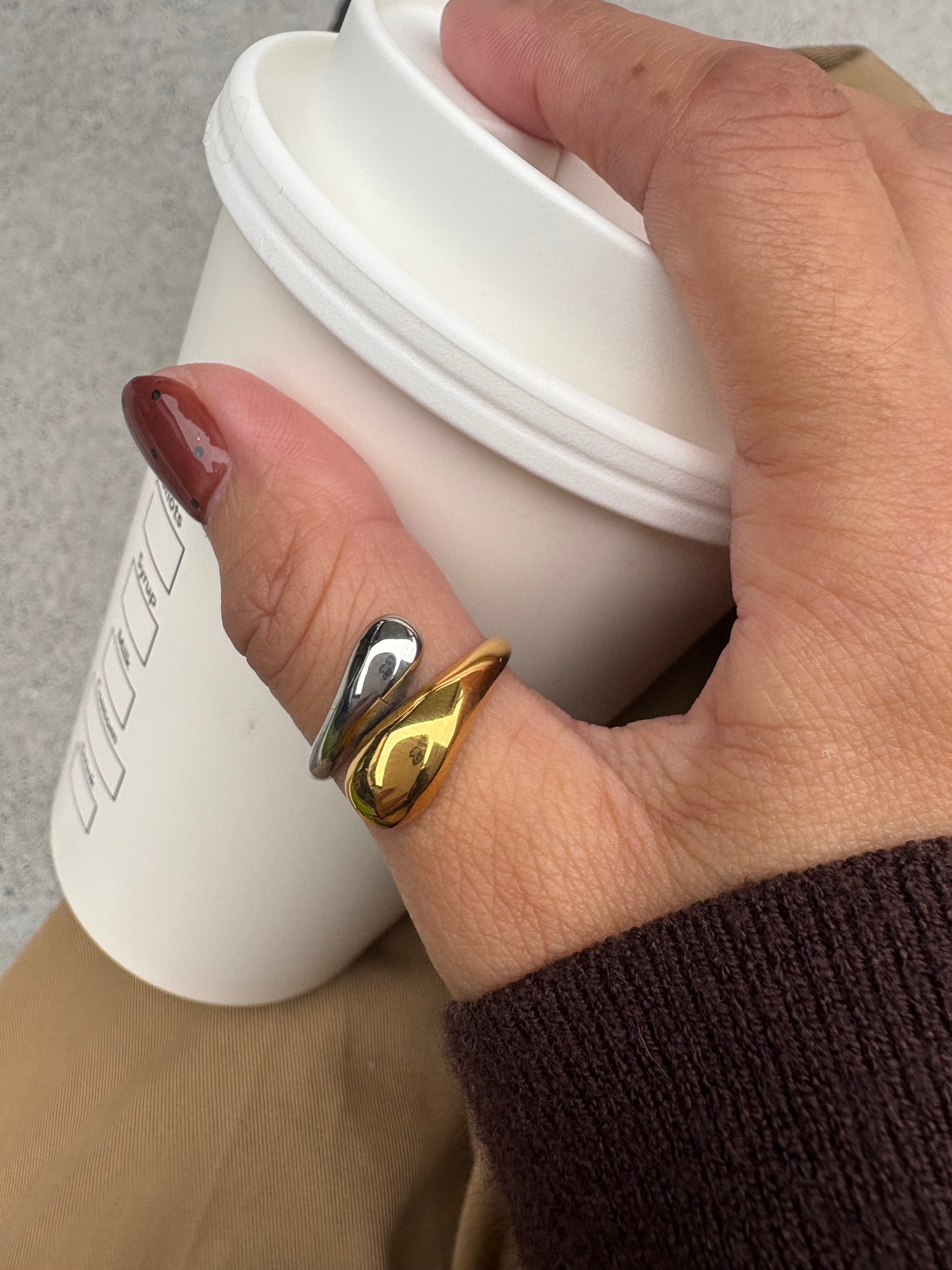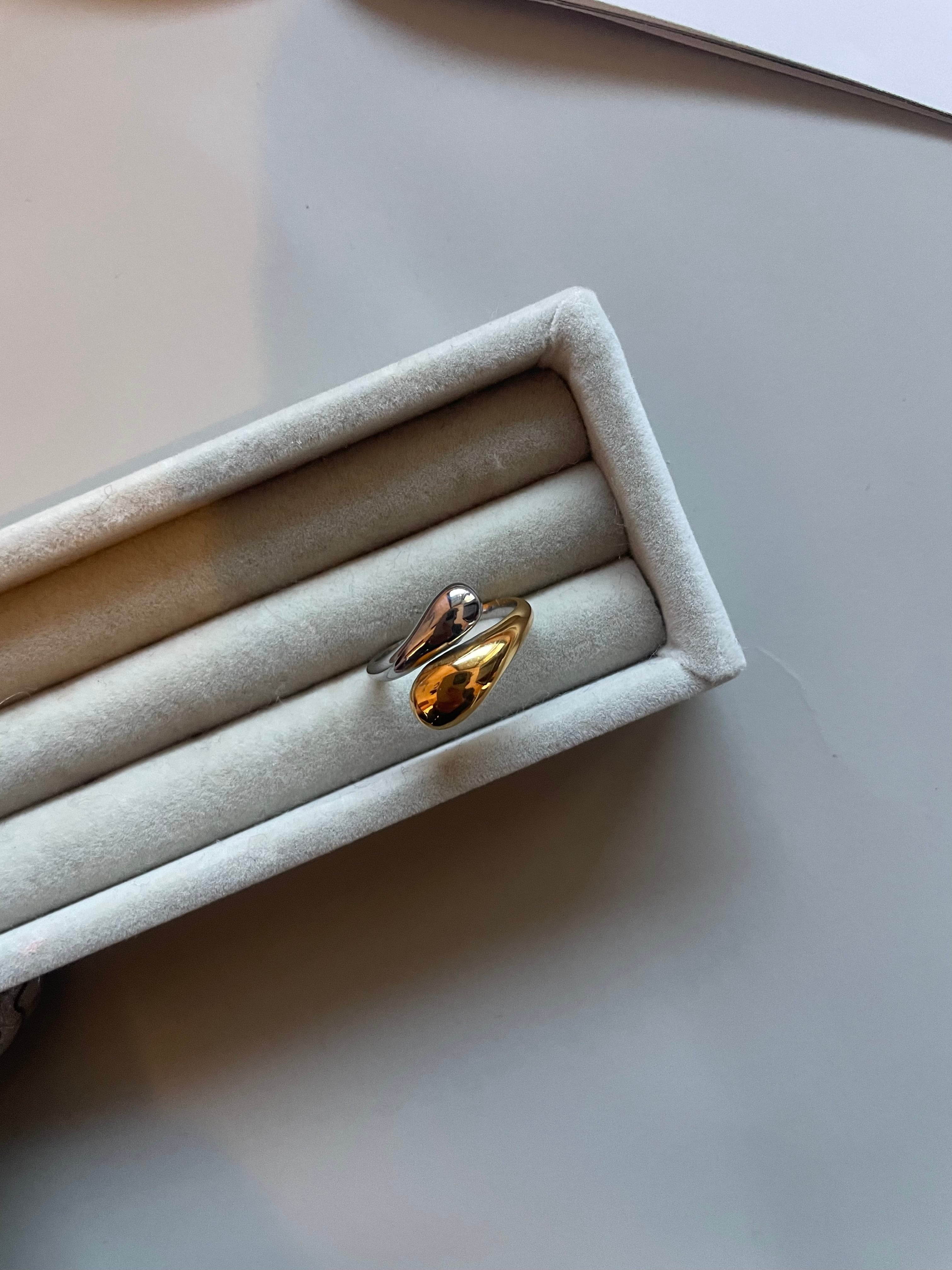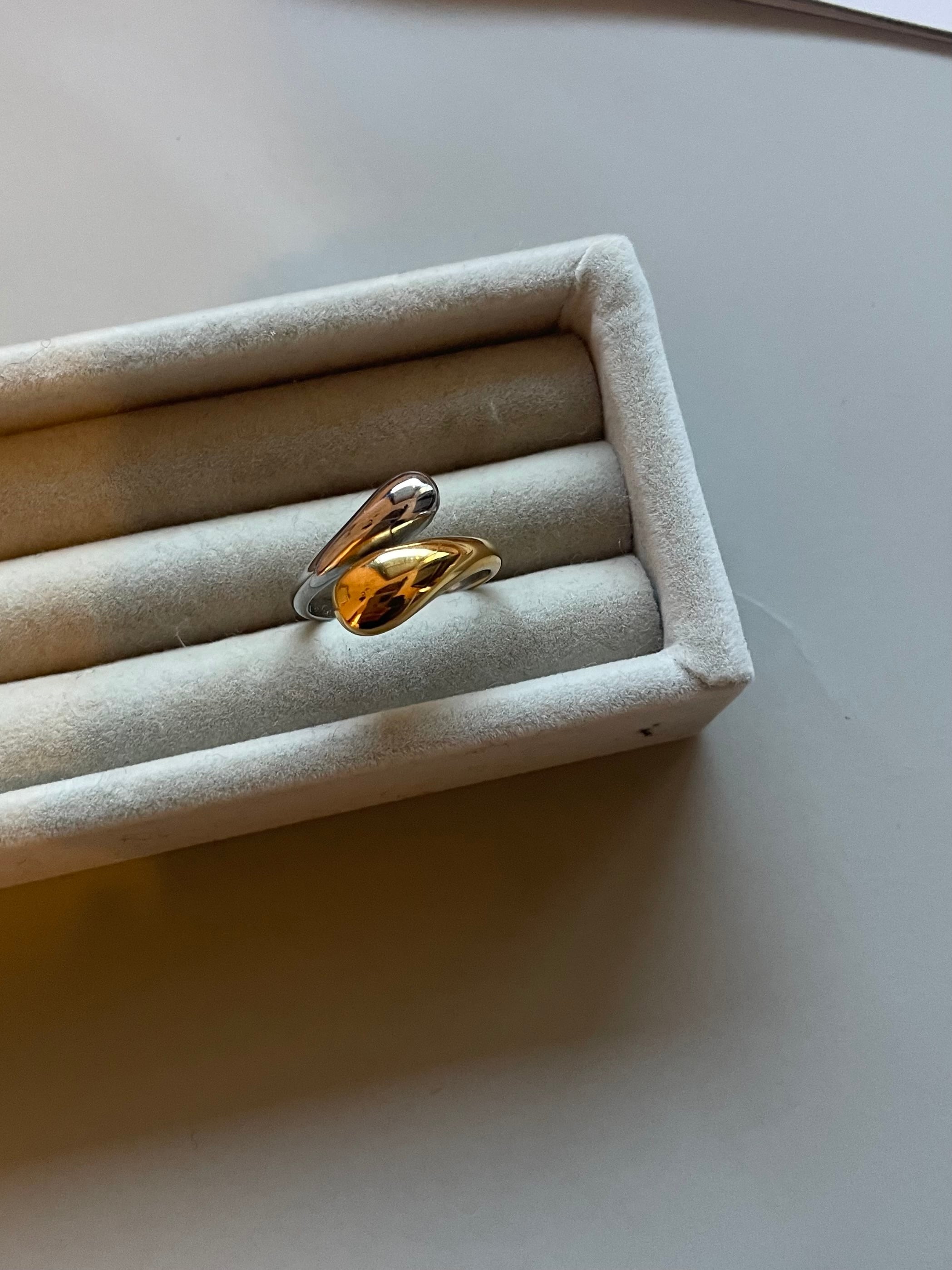このバイカラードロップリングが、あなたの指元に輝きを与えます。