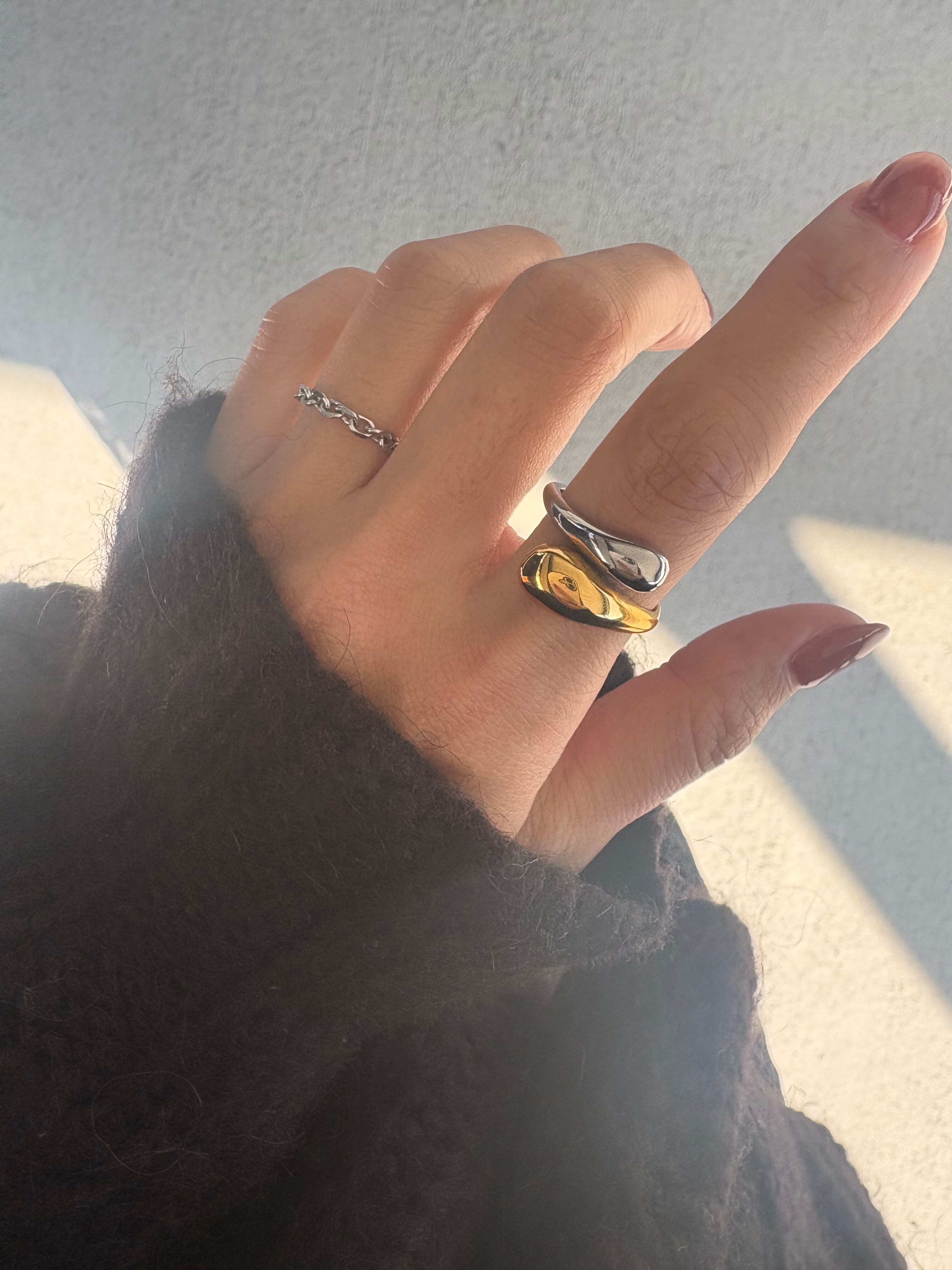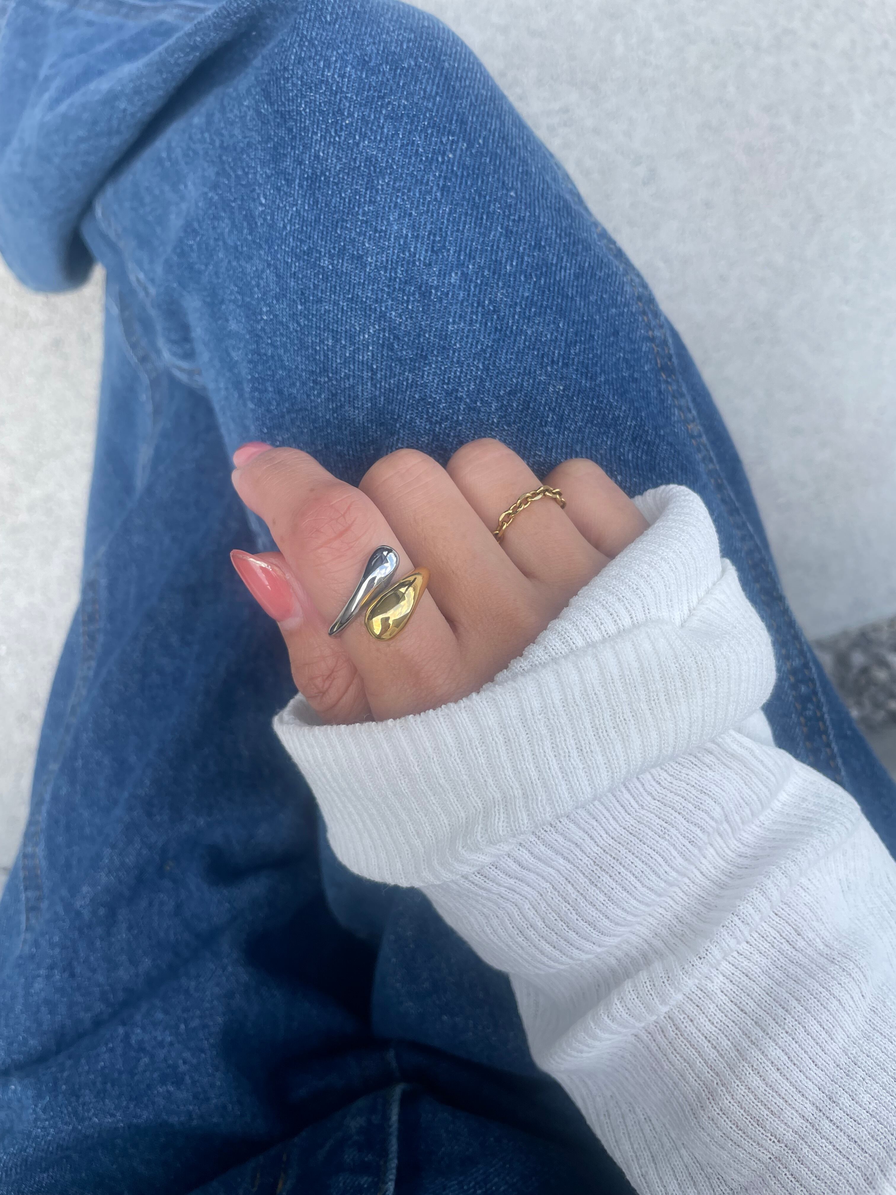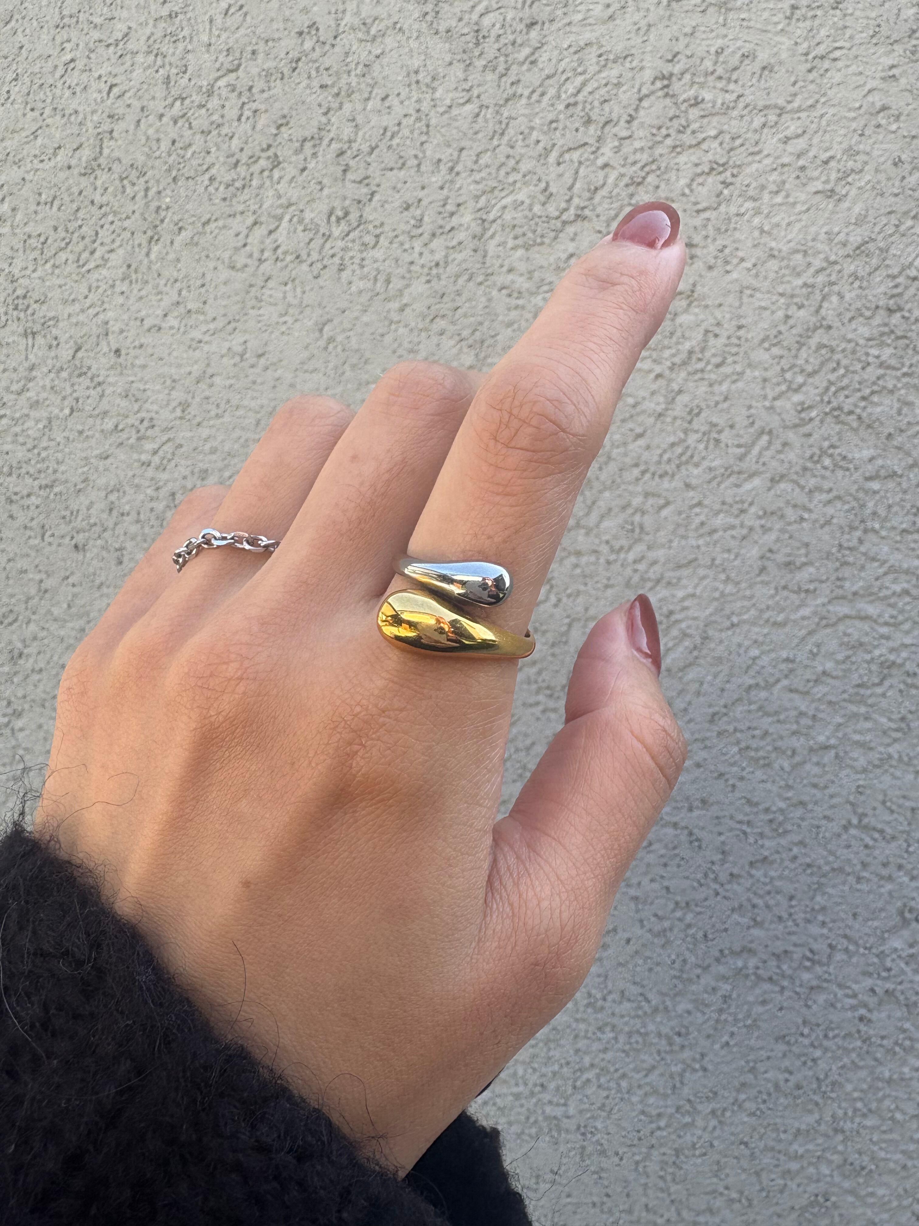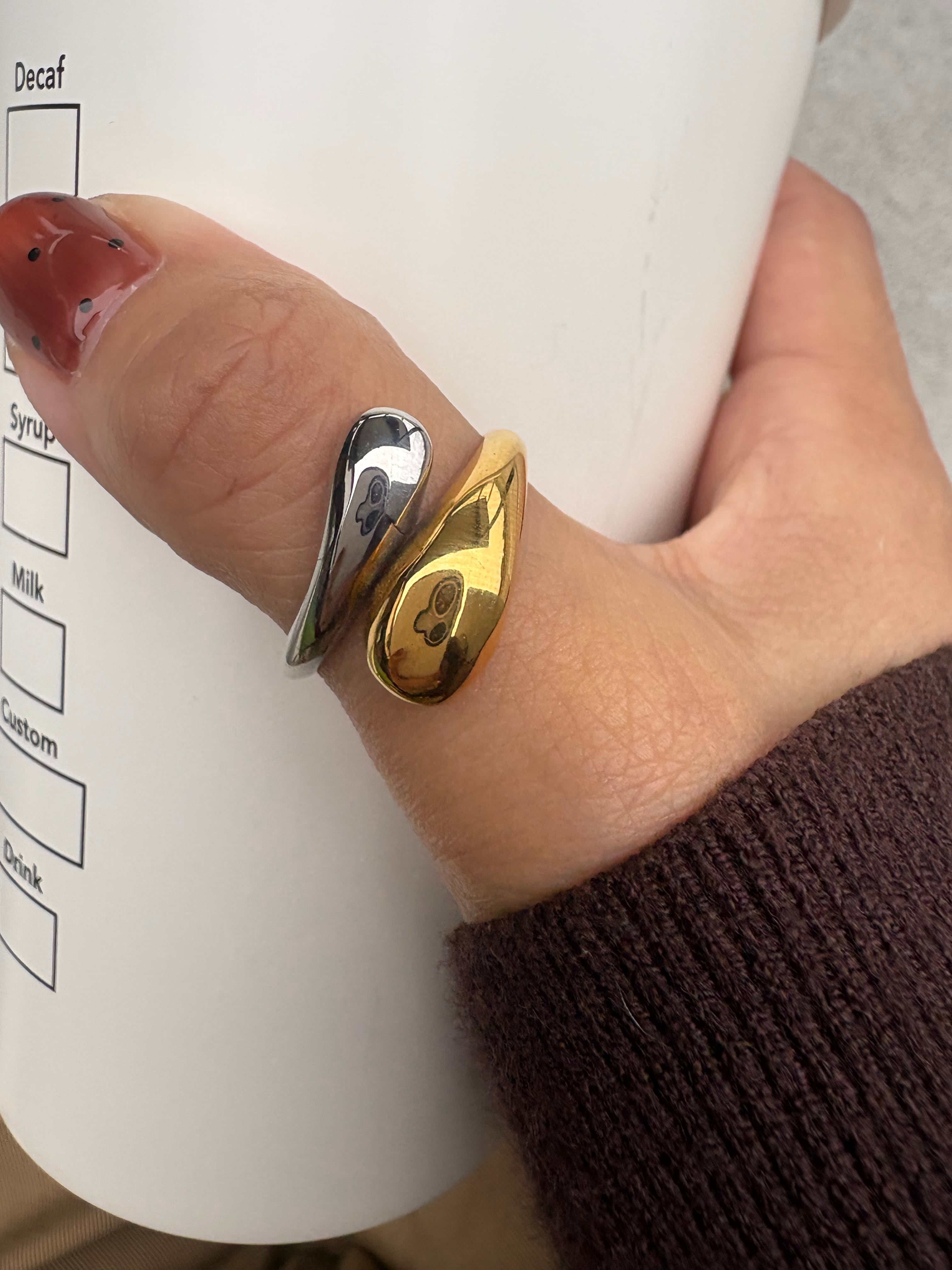 このバイカラードロップリングが、あなたの指元に輝きを与えます。