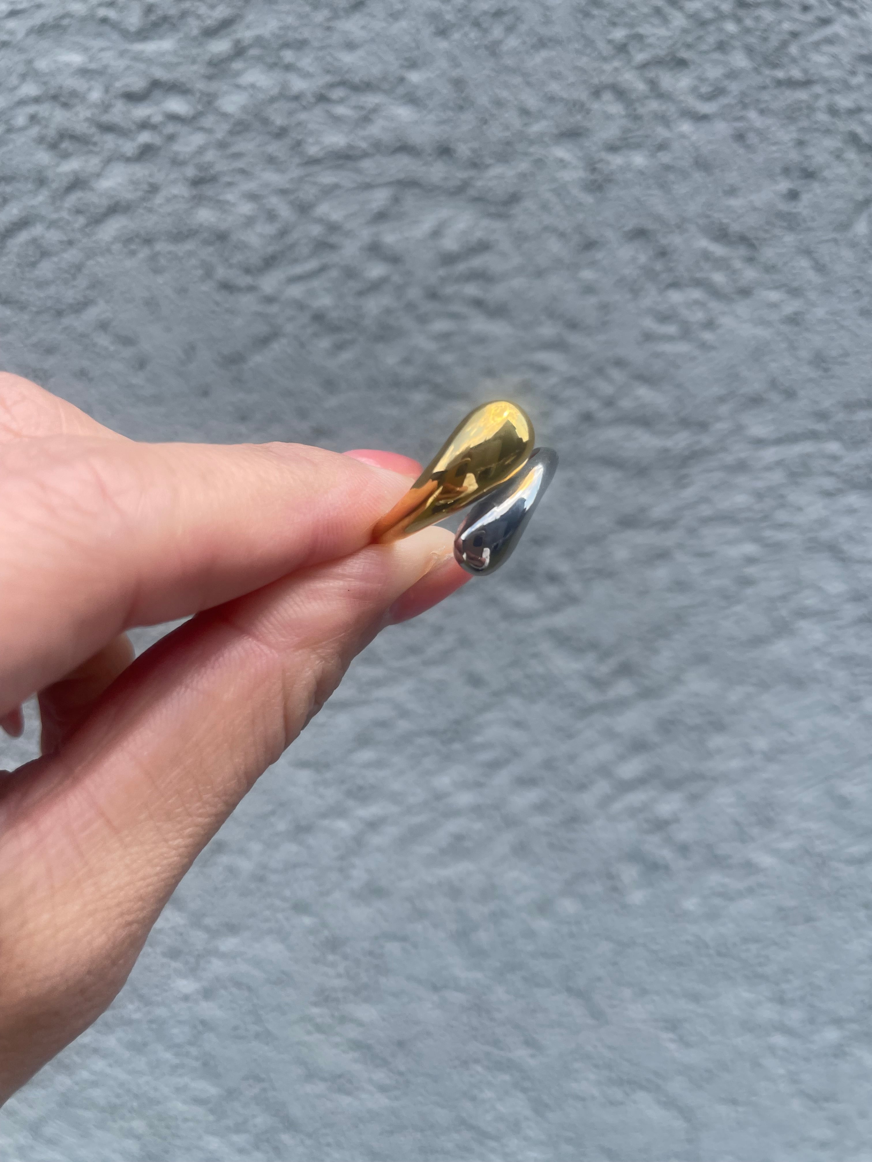 シルバーとゴールドのミックスカラーリングが特徴のバイカラードロップリングです。