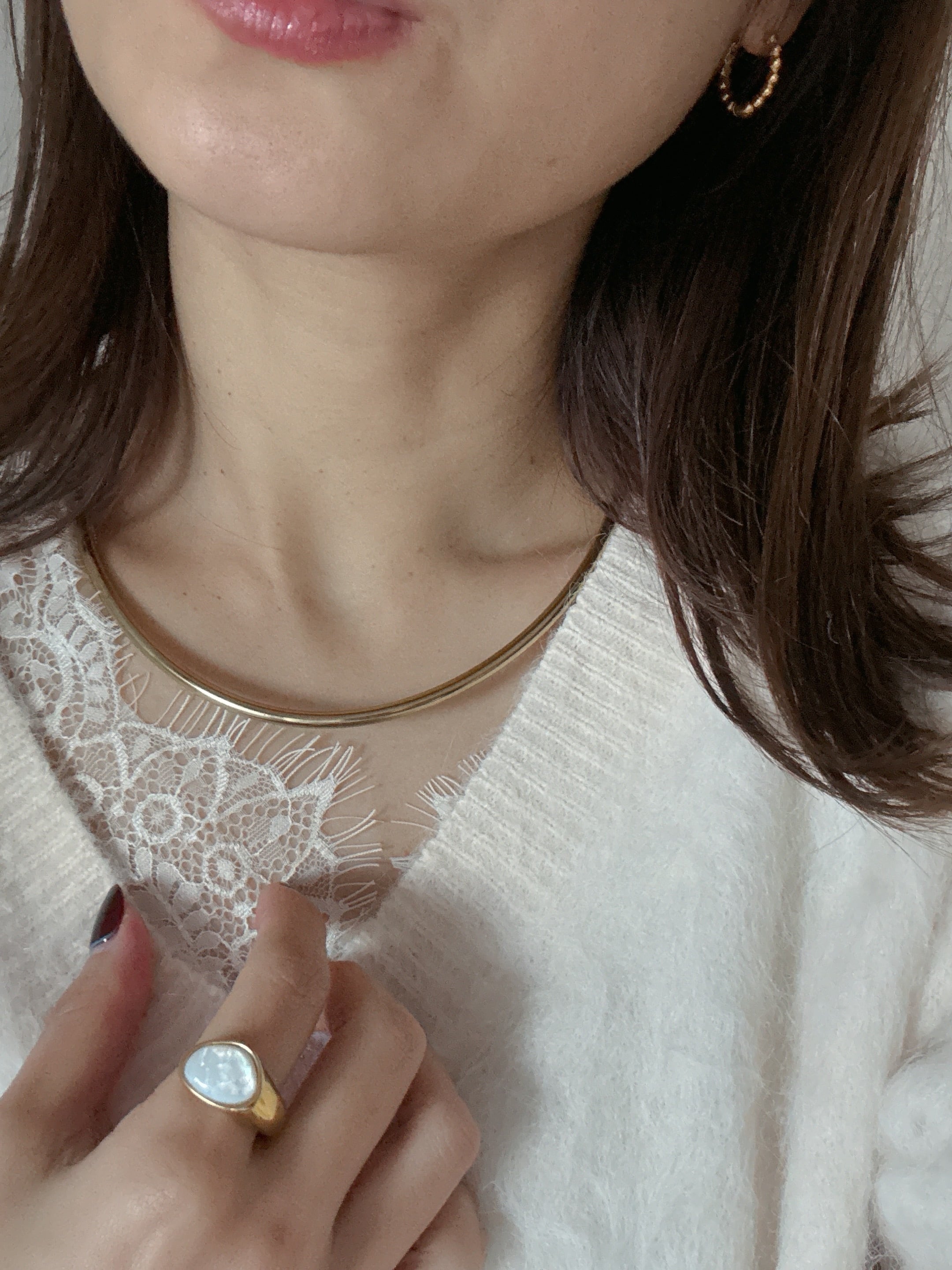 首元にすっと沿う、なめらかな曲線。