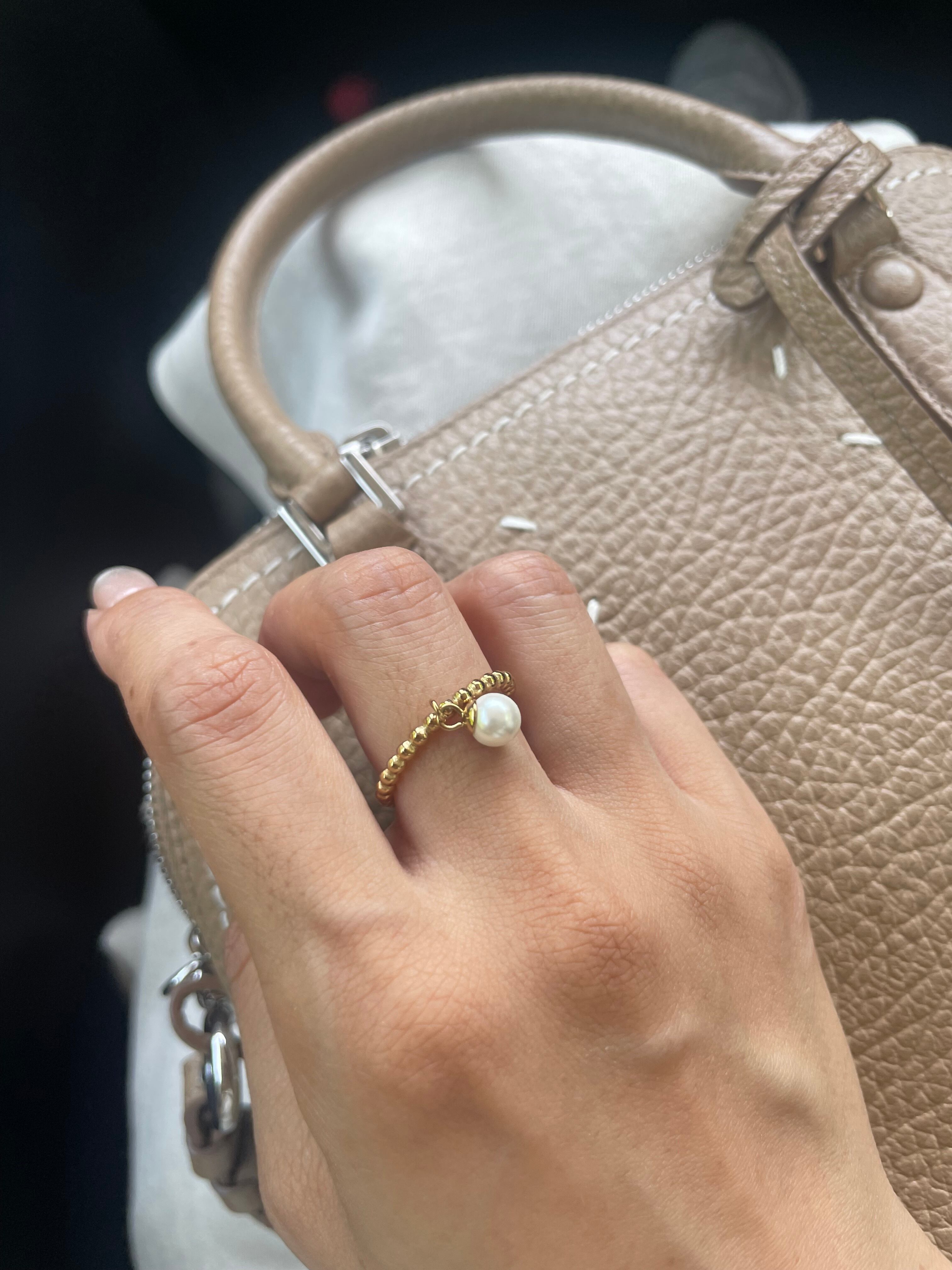 指の動きに合わせてゆらゆら揺れる一粒パールが、上品なアクセントを添えてくれます。