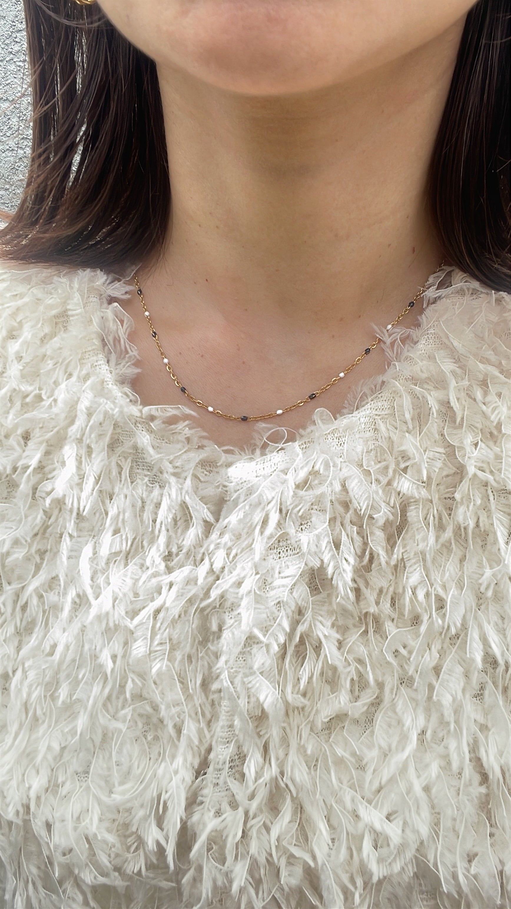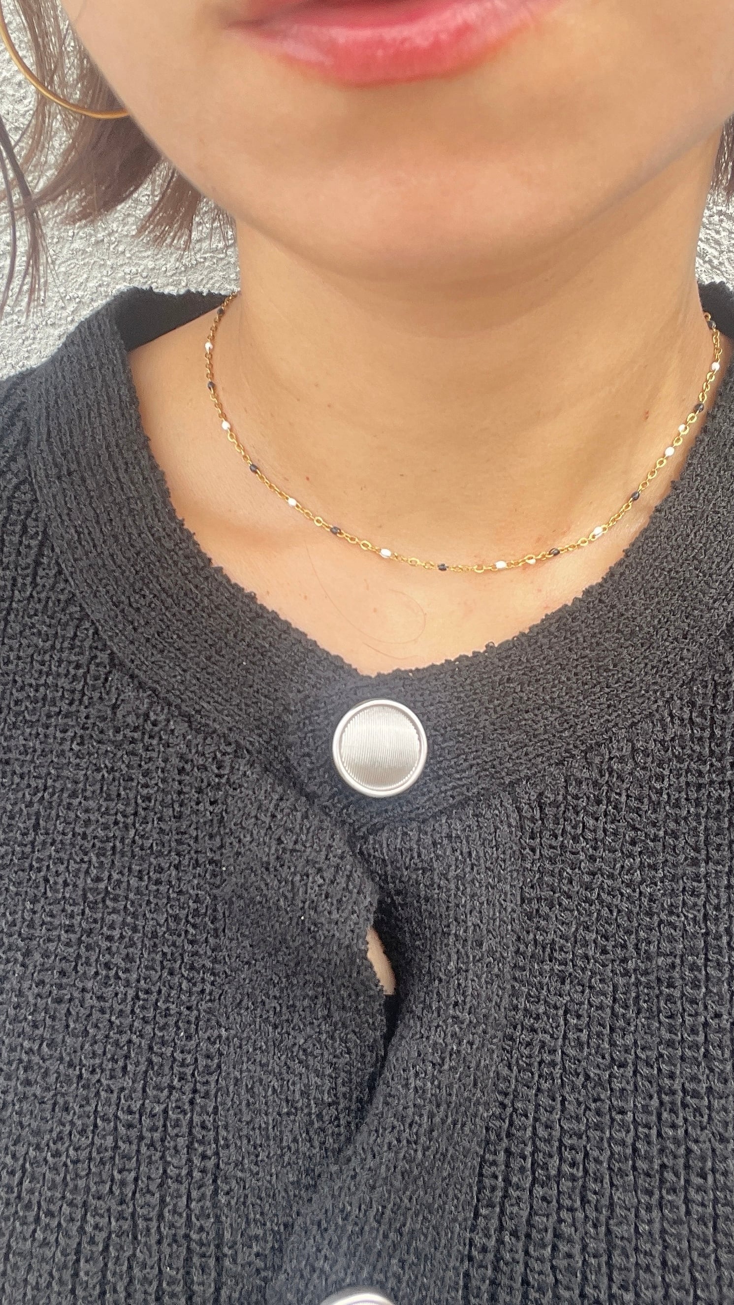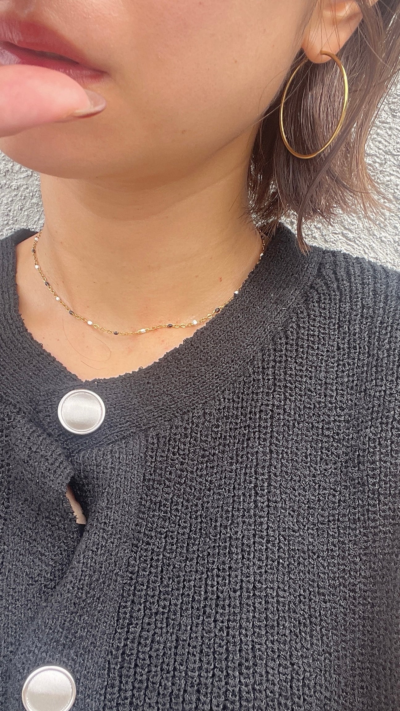 モノトーンカラーのビーズが織りなす繊細なネックレスは、どんなファッションスタイルにも馴染みます。
