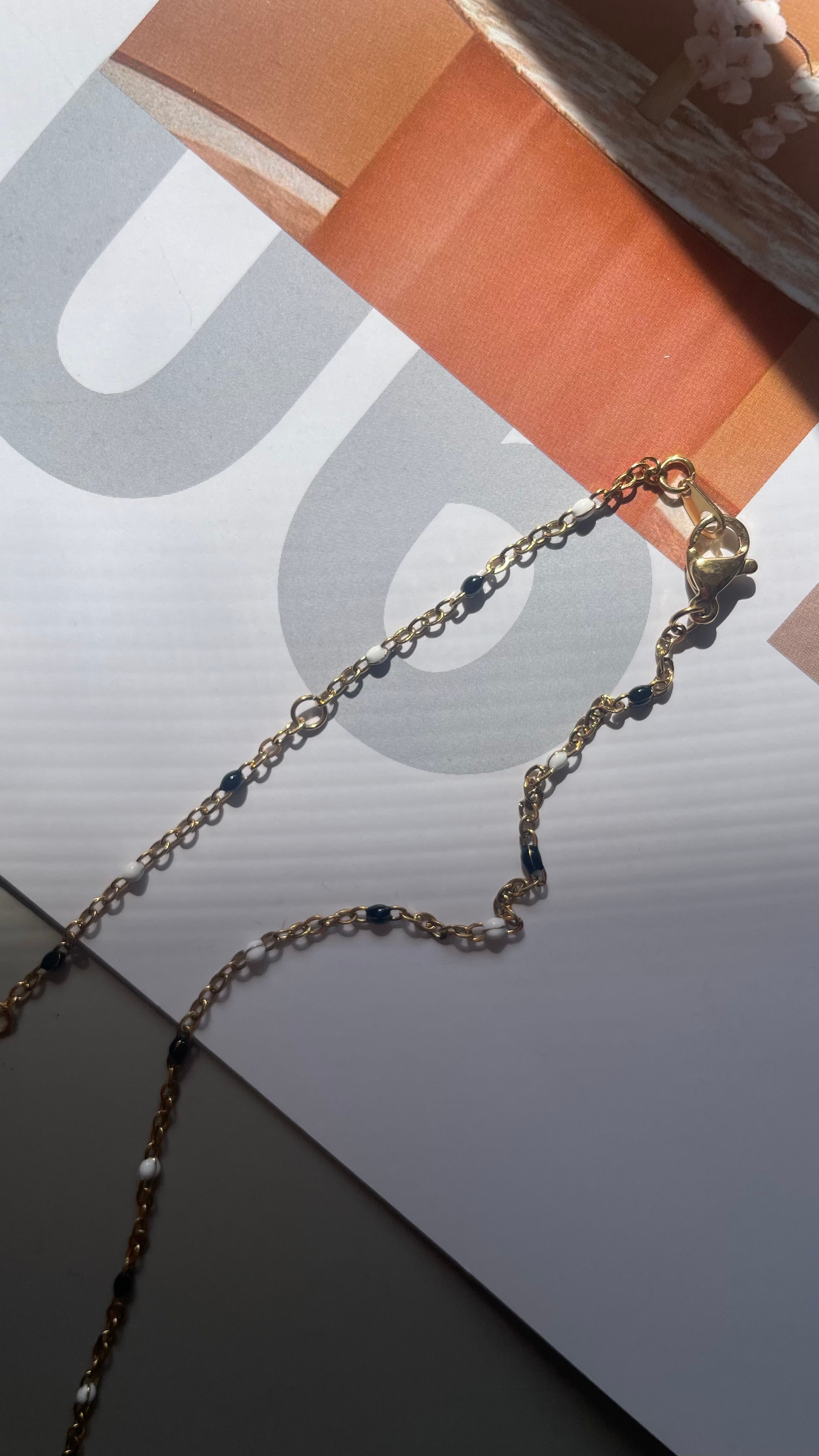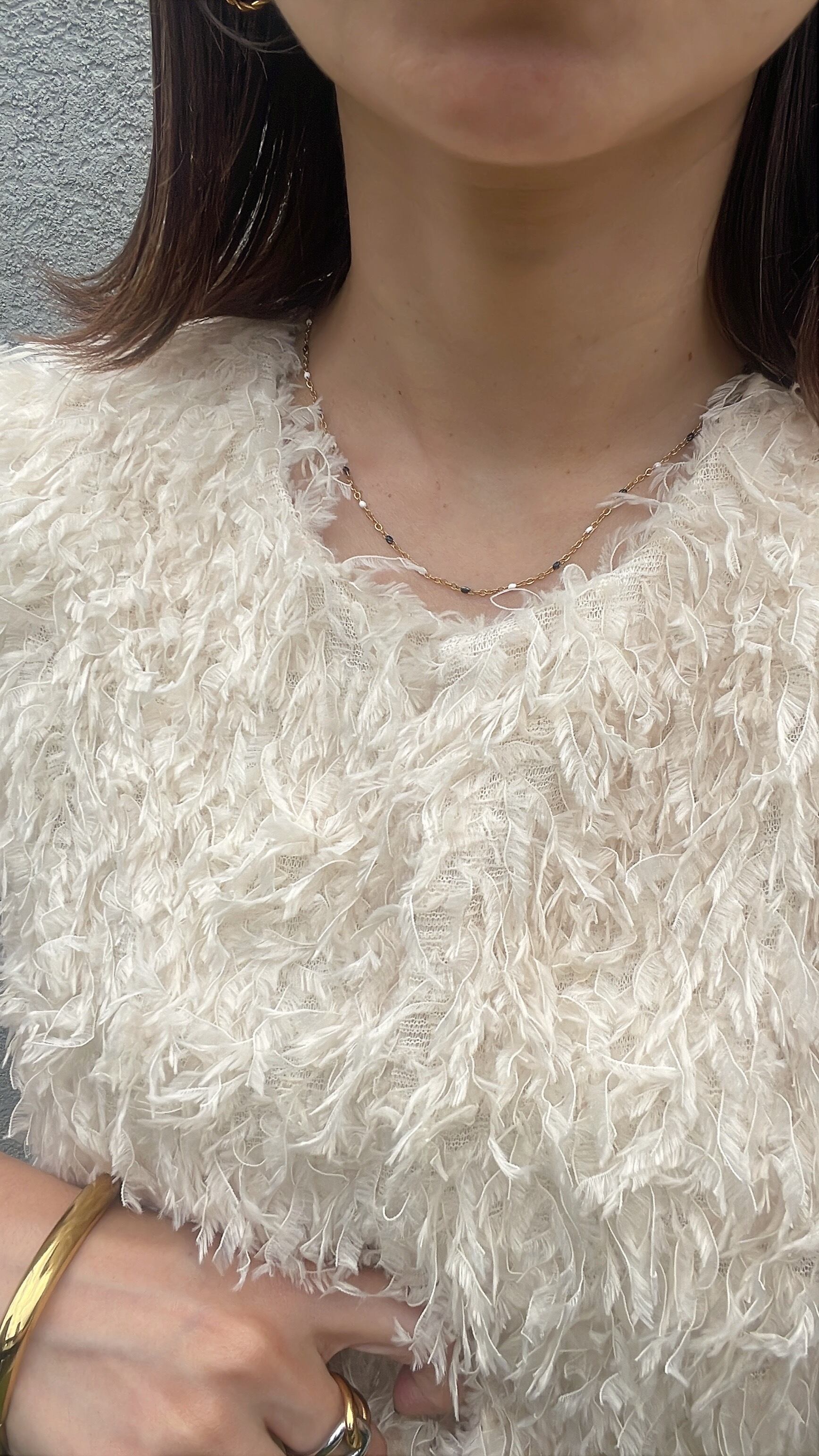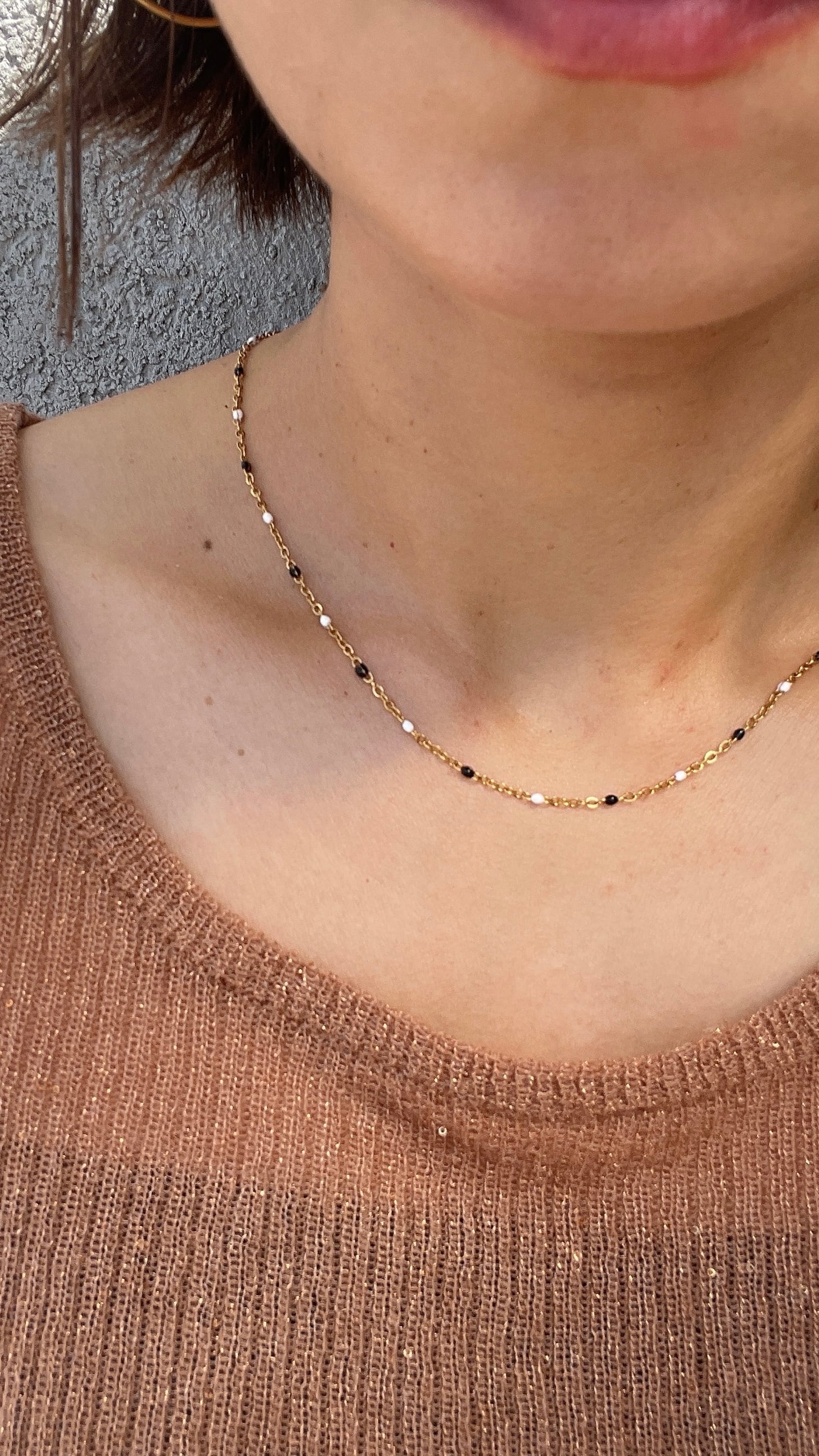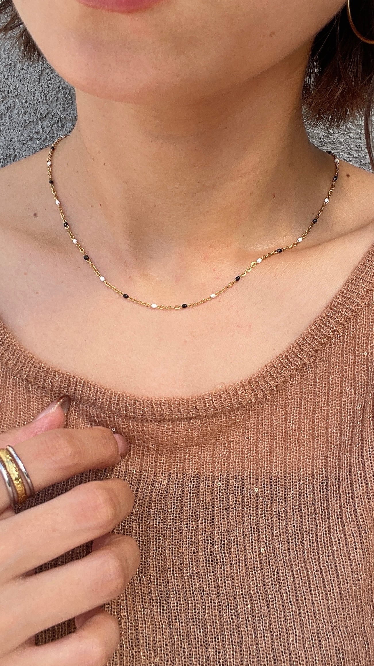 モノトーンカラーのビーズが織りなす繊細なネックレスは、どんなファッションスタイルにも馴染みます。
