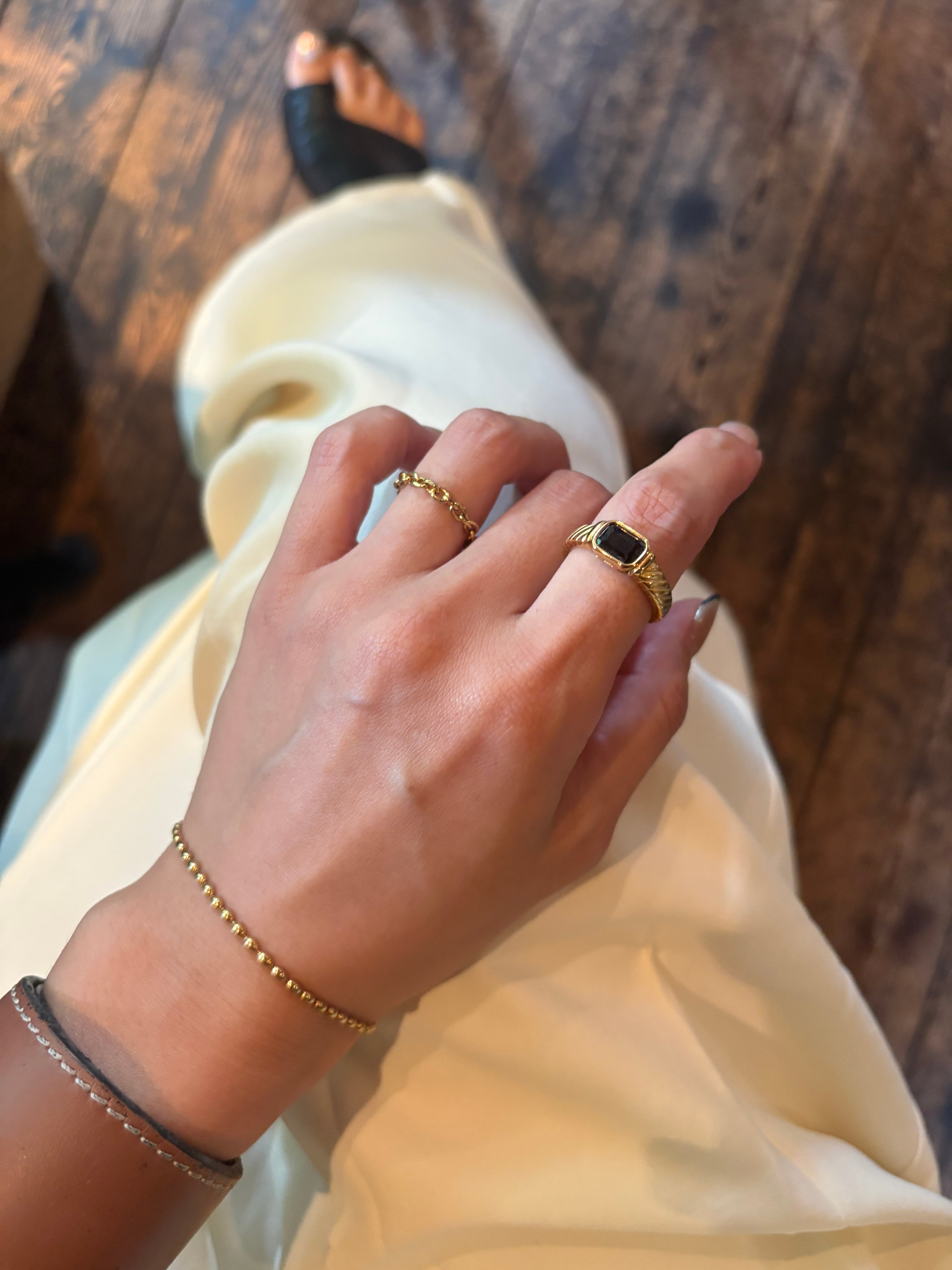 洗練されたスクエアフォルムに、艶めくブラックジルコニアをセット。