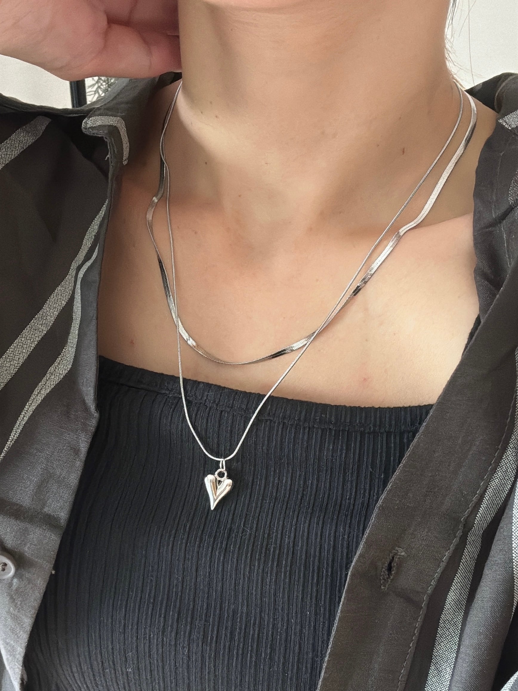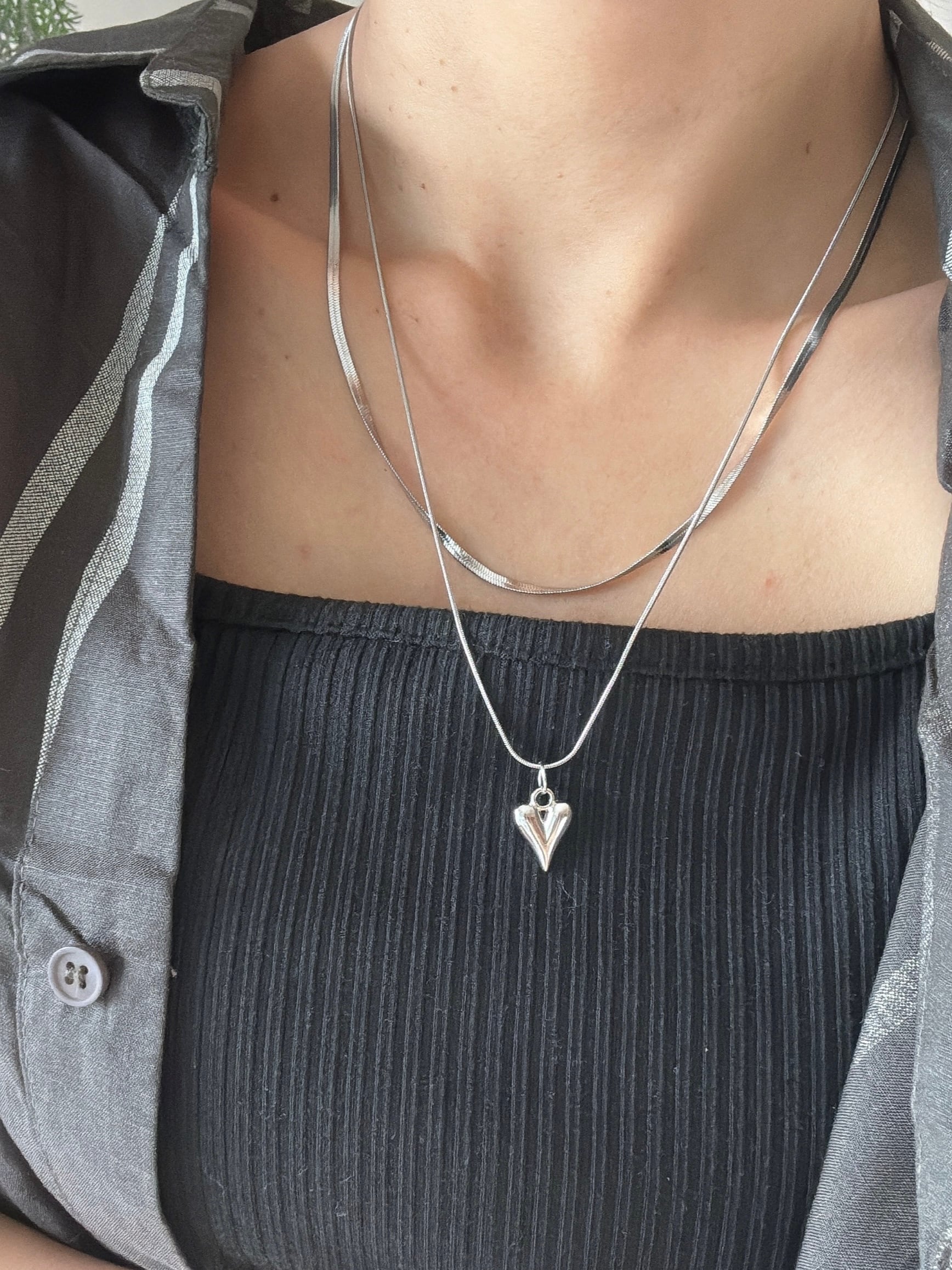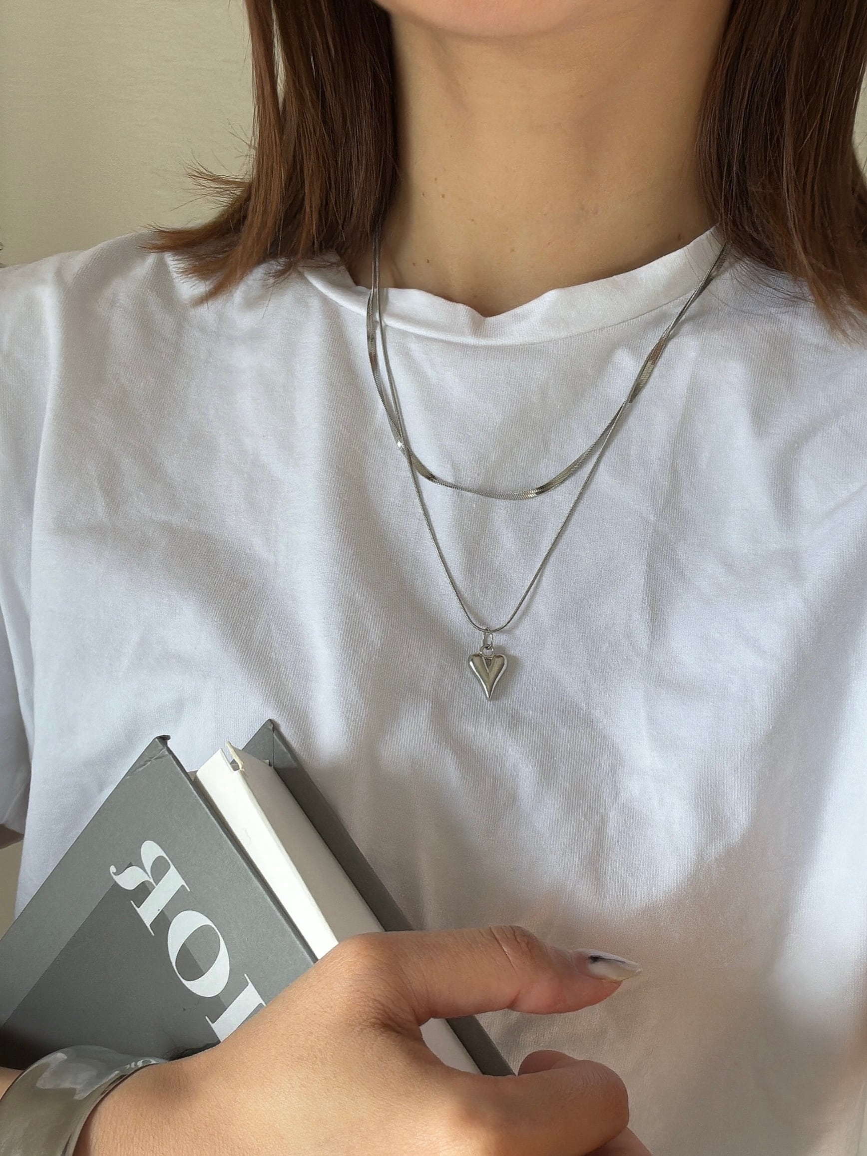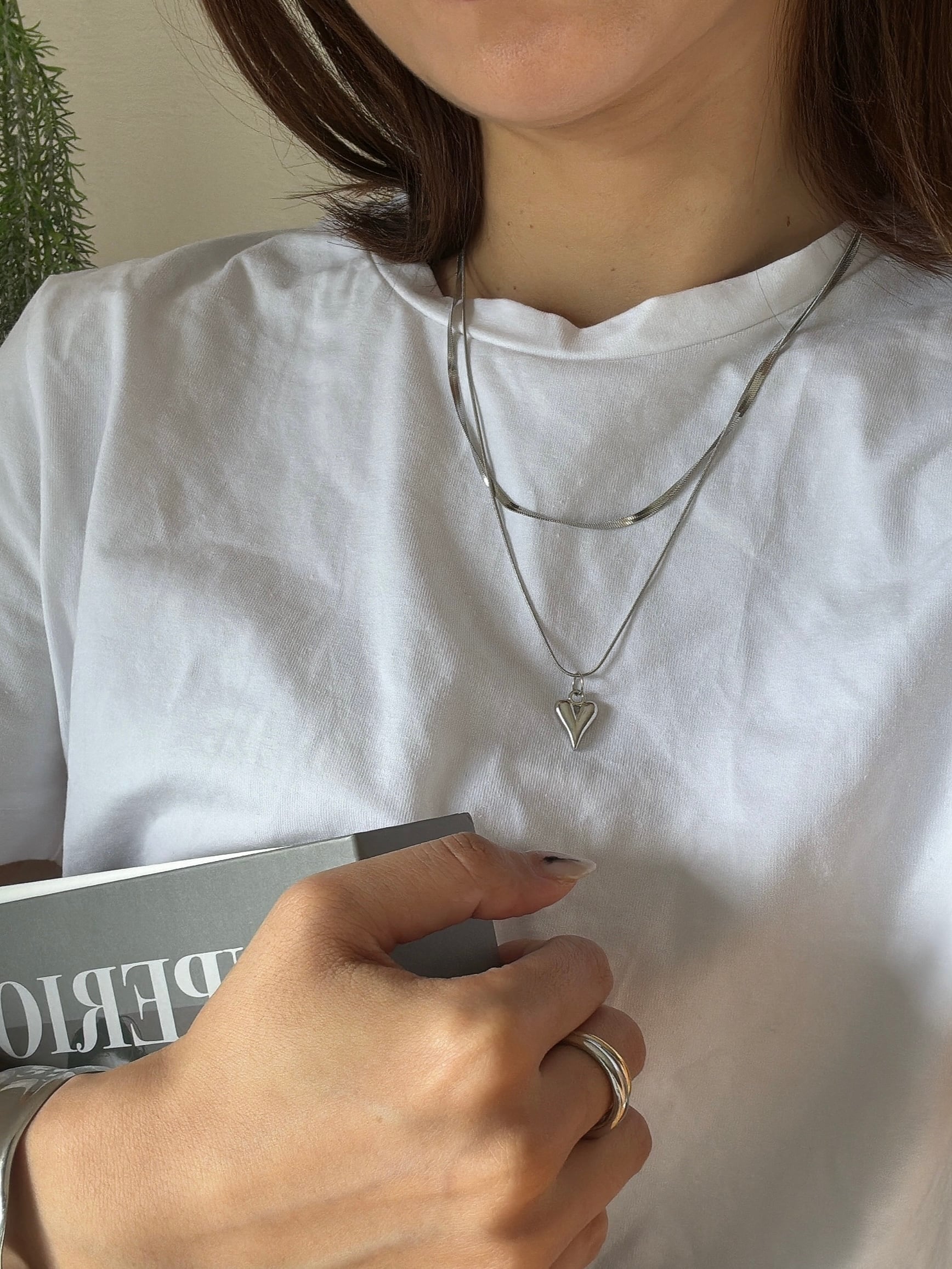 立体的なハートモチーフが印象的なダブルペンダントネックレス。